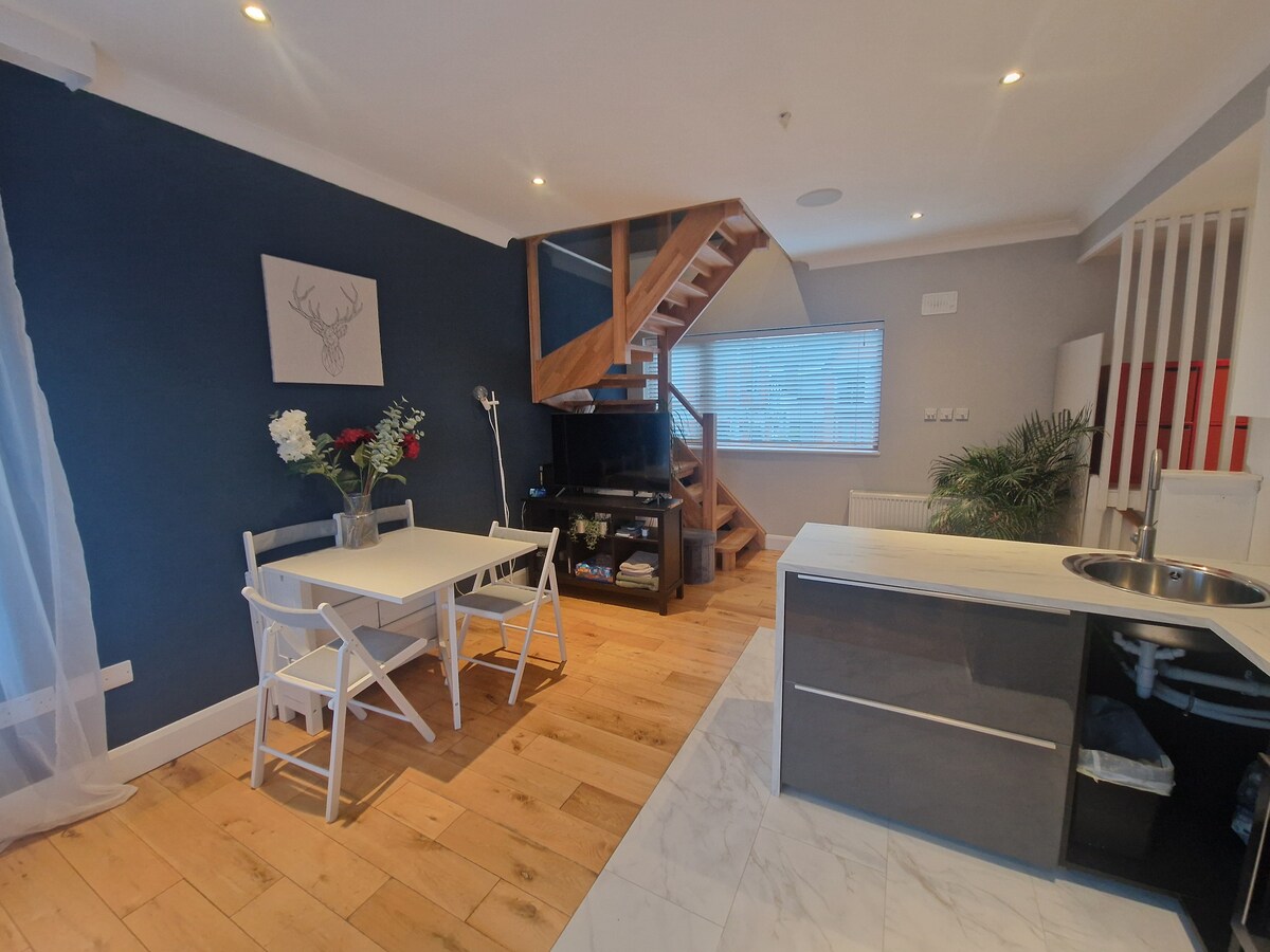 這間舒適的單臥室公寓距離都柏林市中心僅20分鐘路程,非常適合情侶或獨自旅行者。 配備時尚、設備齊全的廚房,配有爐子、烤箱、冰箱和洗衣機。 明亮的起居區提供舒適的沙發,讓您在探索這座城市後放鬆身心。 臥室有一張毛絨雙人牀,讓您睡個好覺。 這間公寓可輕鬆前往公共交通工具、當地商店和咖啡館,是您理想的都柏林基地。