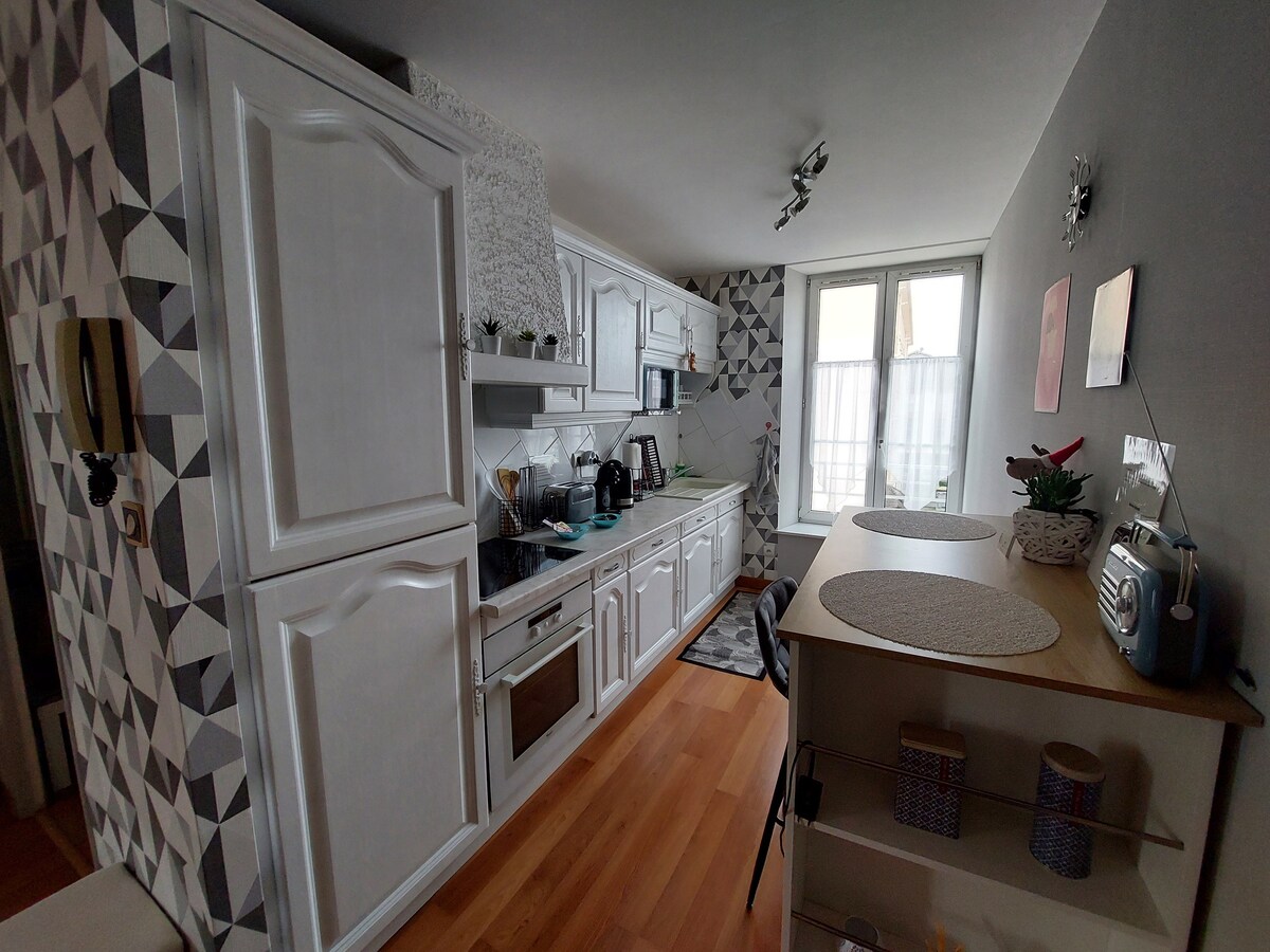 在這個裝飾雅緻的 50 平方公尺小窩中,感受賓至如歸。 位於二樓,沒有電梯。 BZ型沙發床。 提供牀單和擦手巾。 功能齊全、明亮、溫暖和設備精良,這個小巢穴地理位置優越,距離超市、市中心和火車站僅2步之遙。 附近有麵包店和煙草店。 離餐廳、電影院和劇院也很近。 簡言之,你甚至可以不用車!