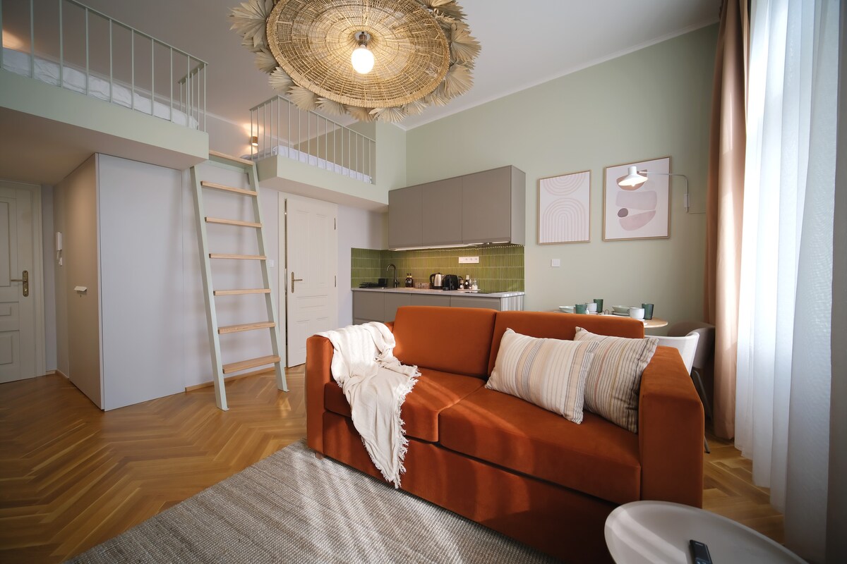 體驗由著名建築工作室Nedvěd Architekti設計的全新時尚全套公寓,從舒適的床鋪到毛巾和咖啡杯,您可以找到一切。精心翻修的建築保留了最好的歷史,並增加了現代住房所需的一切。讓自己舒適! • 5 分鐘即可抵達布拉格市中心 • 距離最近的咖啡廳 80 公尺 • 距離主要火車站 1 站 • 距離地鐵和電車僅幾步之遙