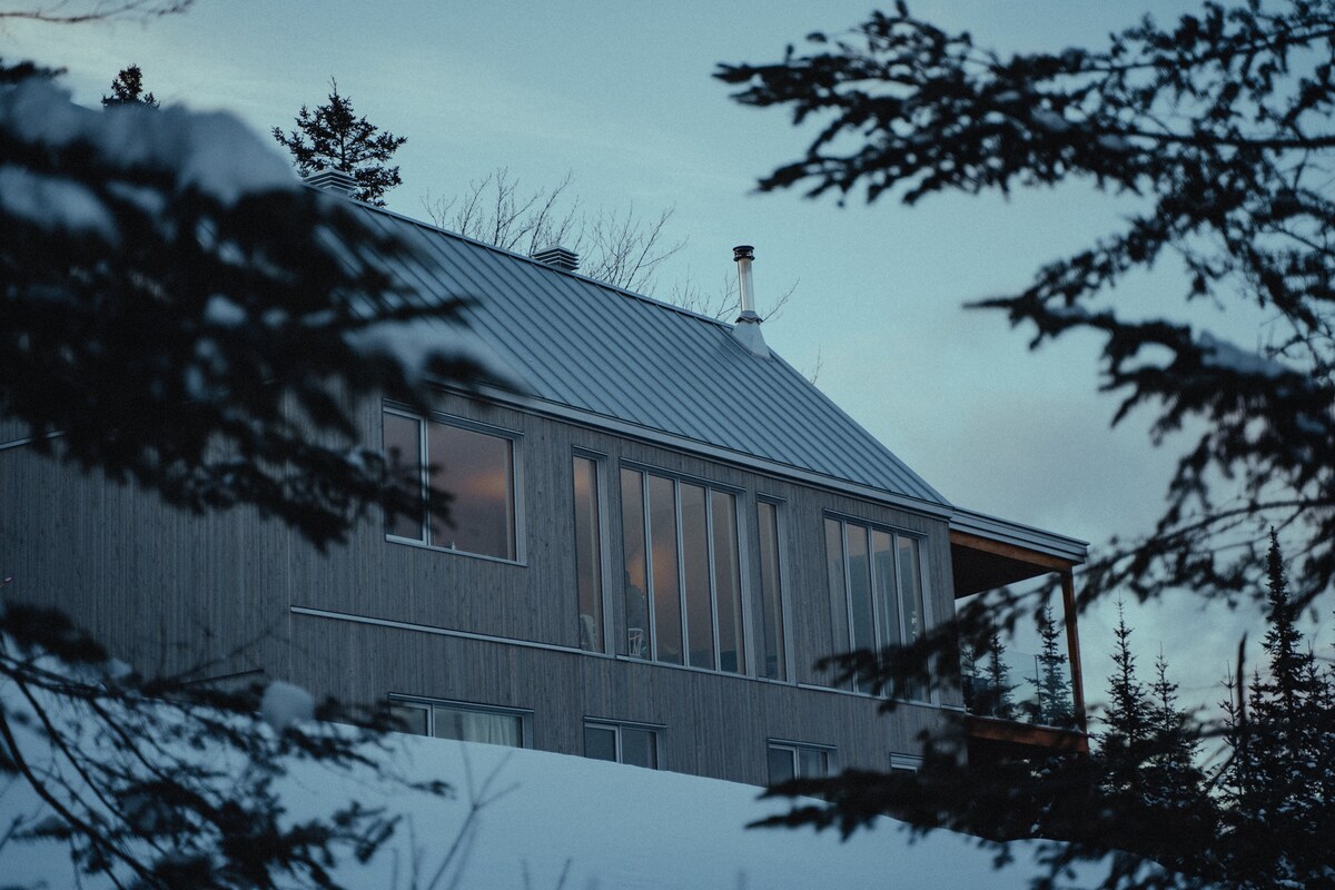 Experience 7 years of Superhost excellence in this modern Charlevoix haven. Perched on a mountain, our Zen retreat features forest-level windows and high-speed Fiber Optic internet. Just 10m from the top of Le Massif, 15m from the bistros and galleries of Baie-St-Paul and 1h from Quebec City. Enjoy "Northern Coziness" in a spacious living area designed for quality time. Ideal for quiet escapes; no parties or events. Your mountainside sanctuary for relaxation and exploration awaits. CITQ #298792