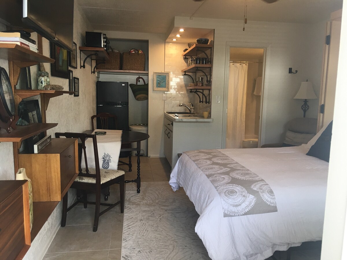 Guest Favorite, fully remodeled and designed for guest comfort, Unit THREE is smaller but packs a punch! New full kitchen (no dishwasher), an oversized L shaped sofa, a luxurious king bed with cotton linens, and a true twin size chair sleeper for the mini you / travel companion. A large corner yard with a firepit, hammock for afternoon naps, and a bbq grill. All our units are supplied with beach gear as the sand is right outside each door!