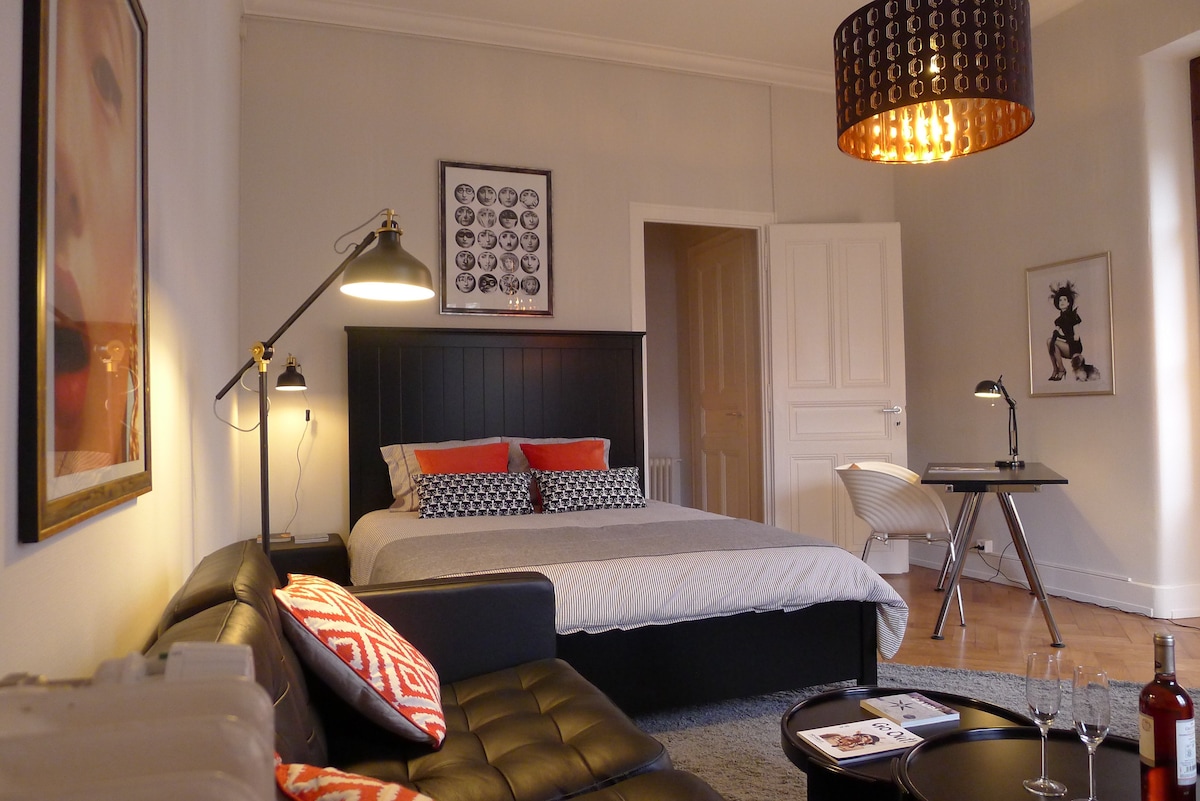 在這間位於活力四射的Eaux-Vives中心地帶、全新翻修的設計師單間公寓中,像當地人一樣享受日內瓦,距離Jet d'Eau僅幾步之遙。 沿著湖邊和公園跑步,步行前往精品店、咖啡廳、劇院和電影院,並配有全套廚房、全新浴室、快速Wi-Fi和配有優質床墊的舒適沙發床,讓您放鬆身心。 在充滿活力的街道上,有葡萄酒吧和米其林星級餐廳,靠近公共交通工具和日內瓦標誌性活動,如l 'Escalade、Bol d' Or和馬拉松。