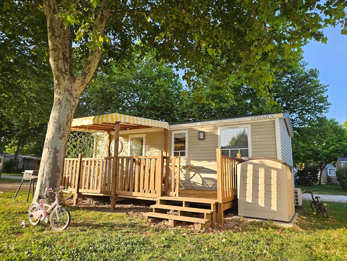 21平方公尺的移動房屋,有成人房,兒童房有3張牀,包括2張上下舖。 浴室、廁所、廚房客廳。 半遮蔽的露臺。 Camping 4⭐️包括餐廳、雜貨店、兒童和青少年俱樂部、足球場、兒童遊樂場、乒乓球桌…泳池、滑梯、潟湖。 參觀理想宮(Palais Idéal du Facteur Cheval)、參觀Peaugres野生動物園(Safari de Peaugres)、乘坐熱氣球飛行、參觀里昂、騎馬... 清潔由您自行負責,牀單/毛巾租賃每張牀€ 10