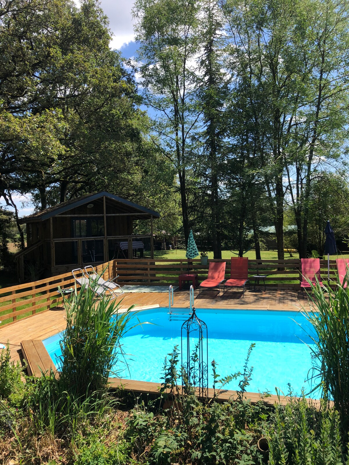 Léon 邀請你在這個獨特而安靜的小木屋裡放鬆身心,小木屋旁邊有一個綠色的池塘。 19 平方公尺小木屋,配有 140 床(+額外床位 1 人或嬰兒床,可應要求提供)、設備齊全的小廚房、淋浴間、室外私人廁所、暖氣、空調、風扇、遮蔭露臺、吊床、平底鍋... 可用:免費船、雙人租賃、自行車租賃、Peugeot 203 老爺車預約。 可攜帶一隻動物(需繫狗鍊)。