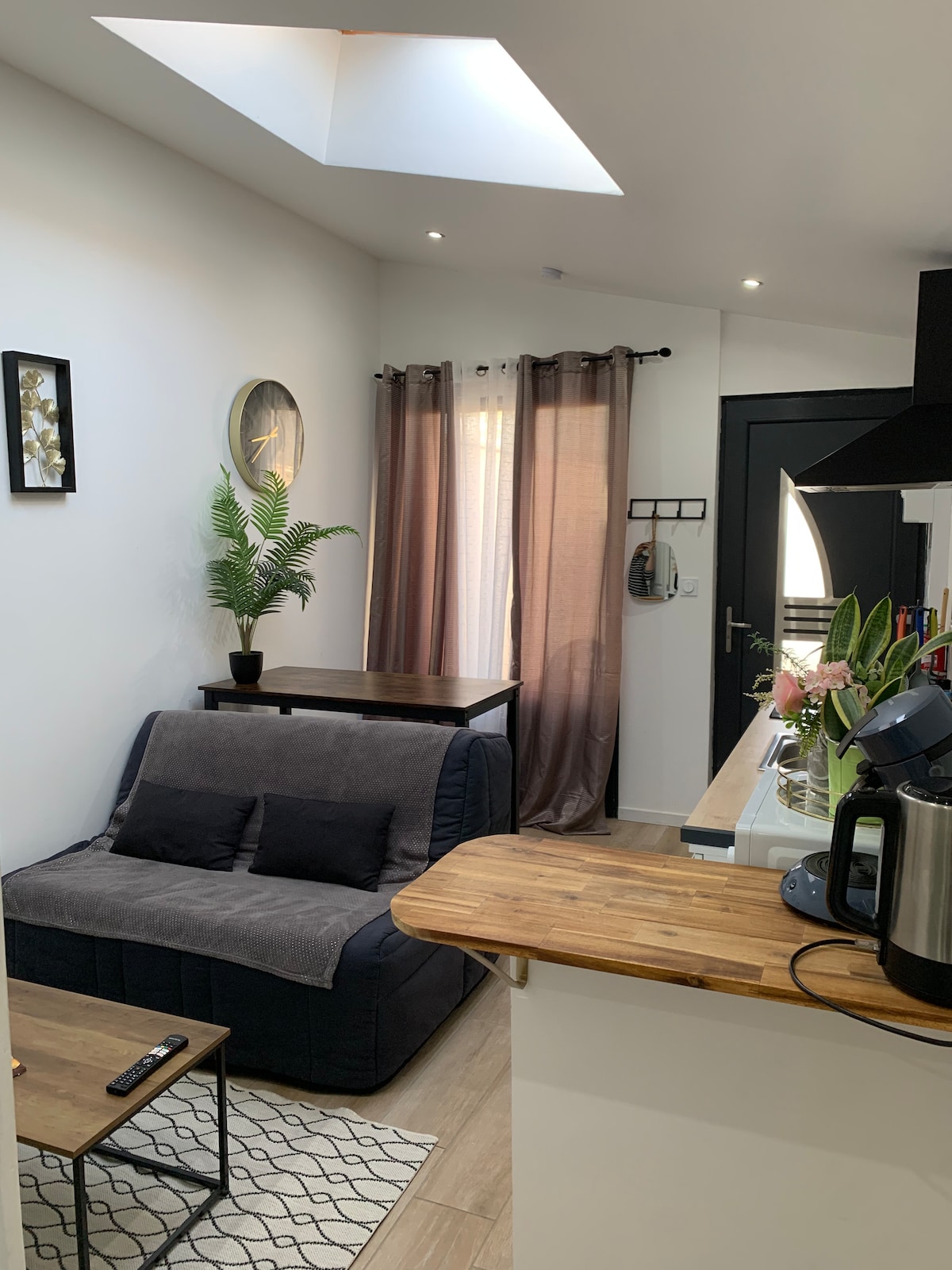 Véritable cocon de détente, à seulement 6 min de l’autoroute. Logement climatisé, idéal pour un couple, un déplacement pro ou une petite famille (jusqu’à 2 enfants). Maison de 27 m² avec lit double, canapé-lit 2 places, et lit bébé sur demande. Cuisine entièrement équipée, Wi-Fi, TV, espace calme pour télétravailler. Terrasse privée, stationnement facile. Environnement paisible, esprit village, à proximité de commerces : boulangerie, tabac, supermarché, restaurants. Confort et sérénité assurés.