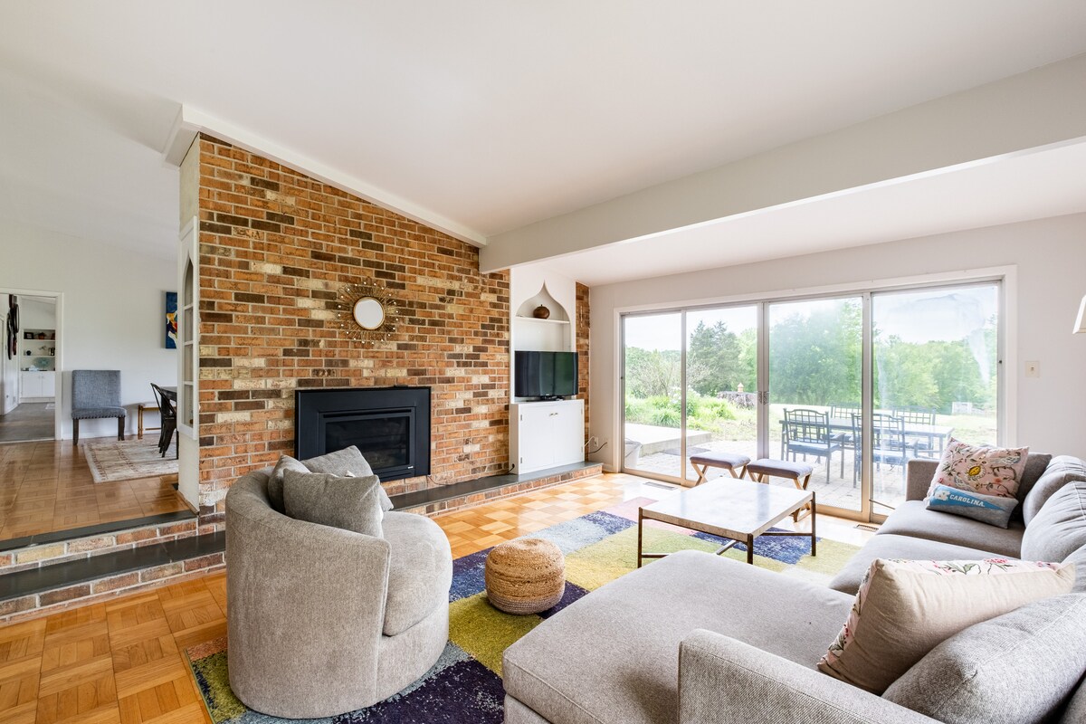 地處約 3.2 公頃 (8 英畝) 的美麗環境中,靠近喬丹湖 (Jordan Lake) 和美國煙草步道 (American Tobacco Trail)——距離羅利達拉姆國際機場 (RDU)、羅利-達拉姆國際機場 (RTP)、羅利 (Raleigh)、達拉姆 (Durham) 和錢珀爾山 (Chapel Hill) 30 分鐘以內。 可完全使用整套獨立 2 臥室客用住房,並有通往閣樓臥室的螺旋樓梯。 樓下有20英尺高的天花板和巨大的窗戶,可俯瞰我們的馬牧場。 非常適合釣魚住宿——距離喬丹湖 (Jordan Lake) 不到 10 分鐘,而且有很多泊車位。 提供 2 級電動車充電。