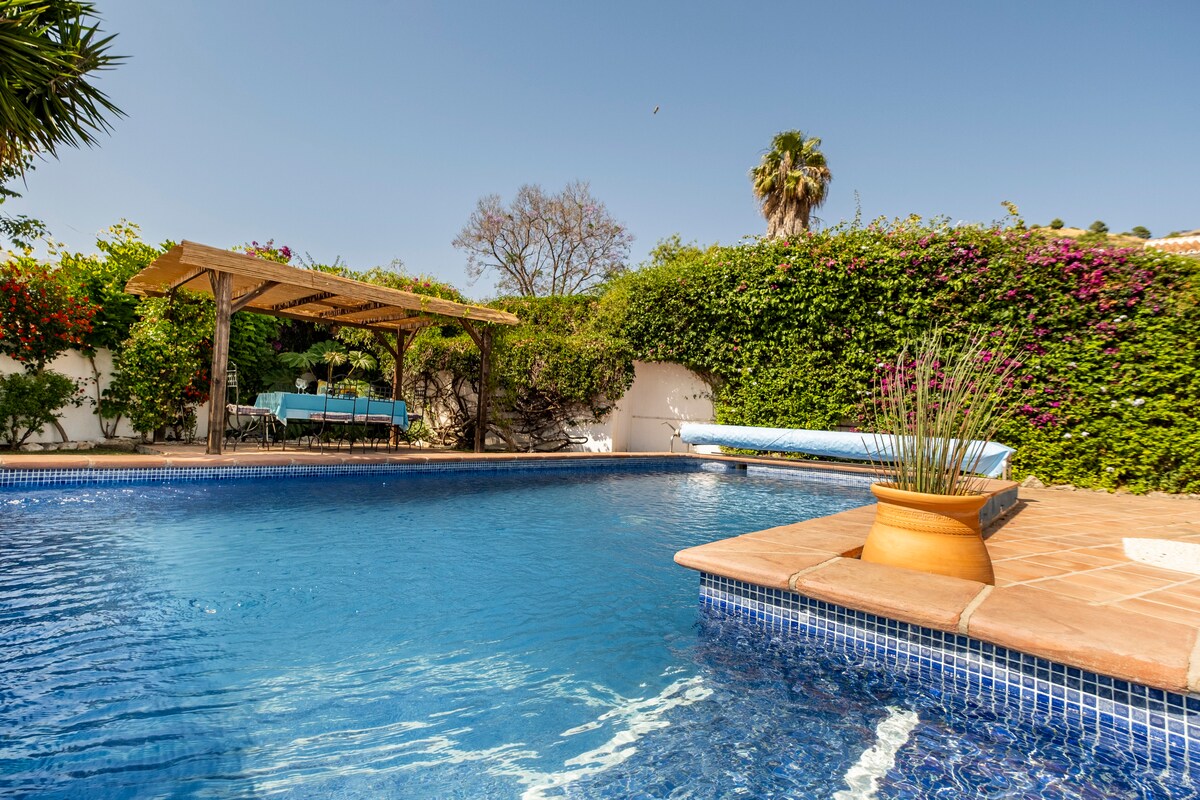 Casueña 位於鄉村中心,坐落在馬拉加市郊,四周環繞著樹木和鳥兒。 距離機場、馬拉加市中心和海灘僅20公裏。 CASUEÑA 是一棟美麗的別墅,配備全年加溫的鹽氯私人泳池、木柴燒烤爐、大樹、六眼燒烤爐和 90 公分的烤箱。別墅設有一個 50 平方公尺的美麗門廊,這裡將成為房子的主要活動區域;門廊旁邊是烤肉架和溫水泳池。
