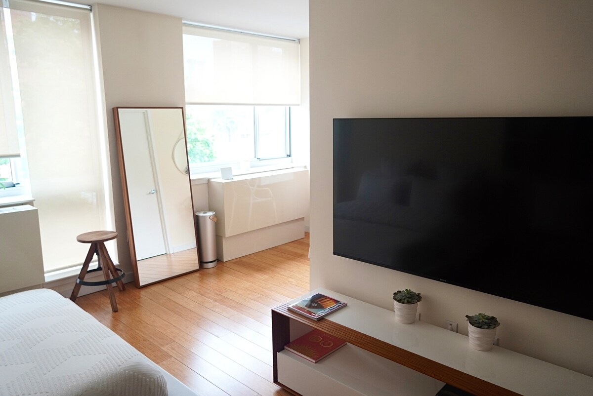 1 Min to Subway: King Bed, Luxe Airy Space + Patio