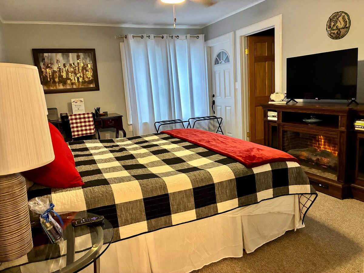 Located in the Museum District of downtown Norwich, this spotless ground-floor suite is just blocks from restaurants and attractions. With only four steps to enter, it’s easy and accessible, ideal for all guests. A king-size bed in the main bedroom, a roomy kitchen, and a coffee/tea bar. Private parking and in-unit laundry make your stay even more convenient. For relaxation, enjoy the cozy bedroom fireplace or unwind in the garden tub. Our senior guests rave about the welcoming experience.