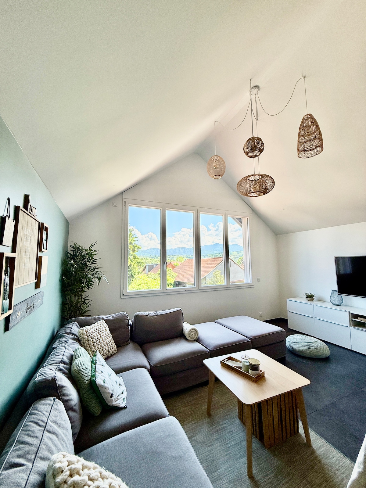 這間位於安比利 (Ambilly) 的新公寓提供卓越的舒適度,空間經過精心設計,可滿足您的所有期望。附近有商店,瑞士邊境近在咫尺,出行更加便捷。每個房間都經過精心設計,營造出迷人而舒適的氛圍。客廳讓您放鬆身心,廚房是烹飪創意的地方,兩間臥室提供寧靜的避風港。 這個生活空間結合了實用性、舒適性和溫馨的魅力。