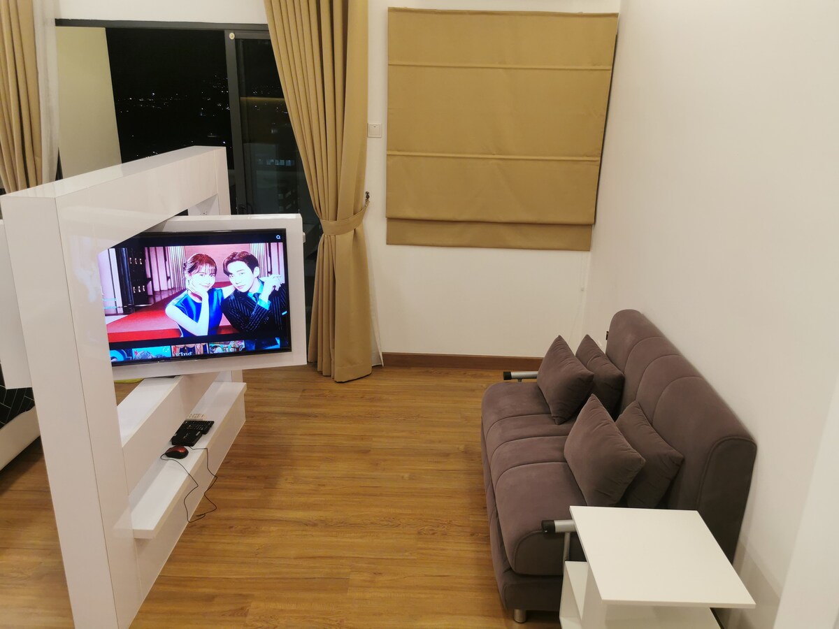 This 1 Br apartment comes with a breathtaking view of KL skyline. It has a 3-seaters sofa living room, dining table, kitchen, desk and a big balcony facing the KL Tower & Petronas Twin Towers. It comes with a 55” TV, Hi-Speed WIFI and a Queen size bed that can fit you comfortably. *The other unit of this Dual Key apartment is a compact Studio with Queen size bed, pantry, washroom & bath. It can fit in friends who travel with you with privacy. Welcome to ask for more details!