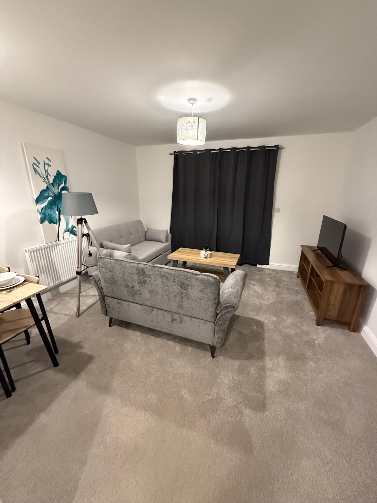 入住這間位於市中心的房源,享受時尚體驗。 位置:此房源步行2分鐘即可抵達Newcastle-under-Lyme Town Centre。 -您自己的套房R6 -設備齊全、時尚的大廚房,配有兩個烤箱、兩個水槽、整合式微波爐和三個冰箱。 -客廳和用餐區域,配有沙發,以及壁畫下方的酒吧和凳子。 -為那些喜歡開車的人提供私人停車位