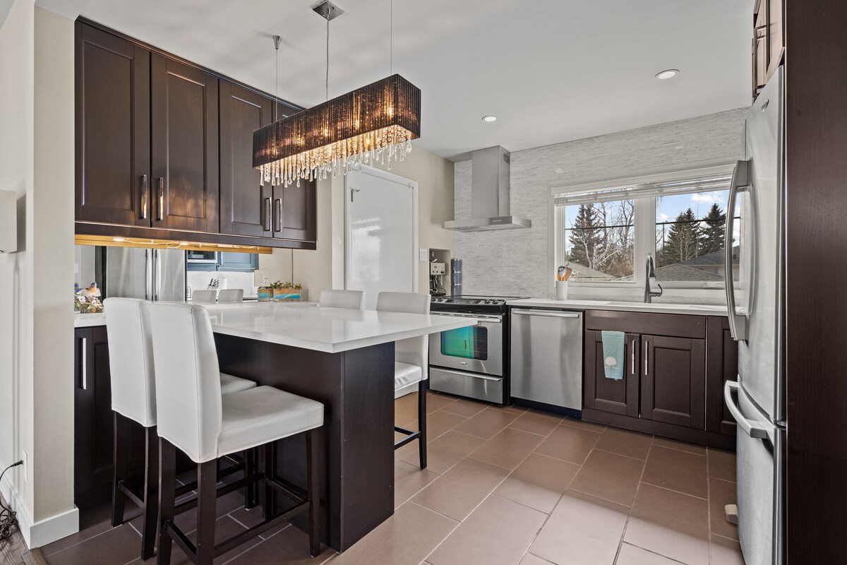這間現代化的3層複式公寓位於Parkhill市中心,非常適合大家庭或團體入住。距離卡加利最好的餐廳、史丹利公園/艾爾博河步行道、奇努克購物中心、39號大道輕軌和市中心僅幾分鐘路程!從二樓和三樓陽臺欣賞日落和市中心天際線。使用我們的1 GB WiFi和3個指定工作空間在家工作。在配有專業電器和 12 人座位的美食廚房中享受娛樂。BL#252542