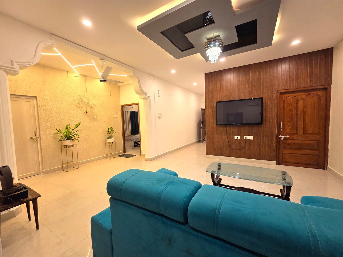 Kick back and relax in this calm, stylish space. Experience a cozy and stylish 1BHK perfect for couples, families, or solo travelers. Enjoy a bright living space, a comfy bedroom, a functional kitchen, and a refreshing terrace area. BBQ🍤, 🔥 camphire , and home-style food 🥘 are available on request. A peaceful, secure stay with 24/7 CCTV surveillance.