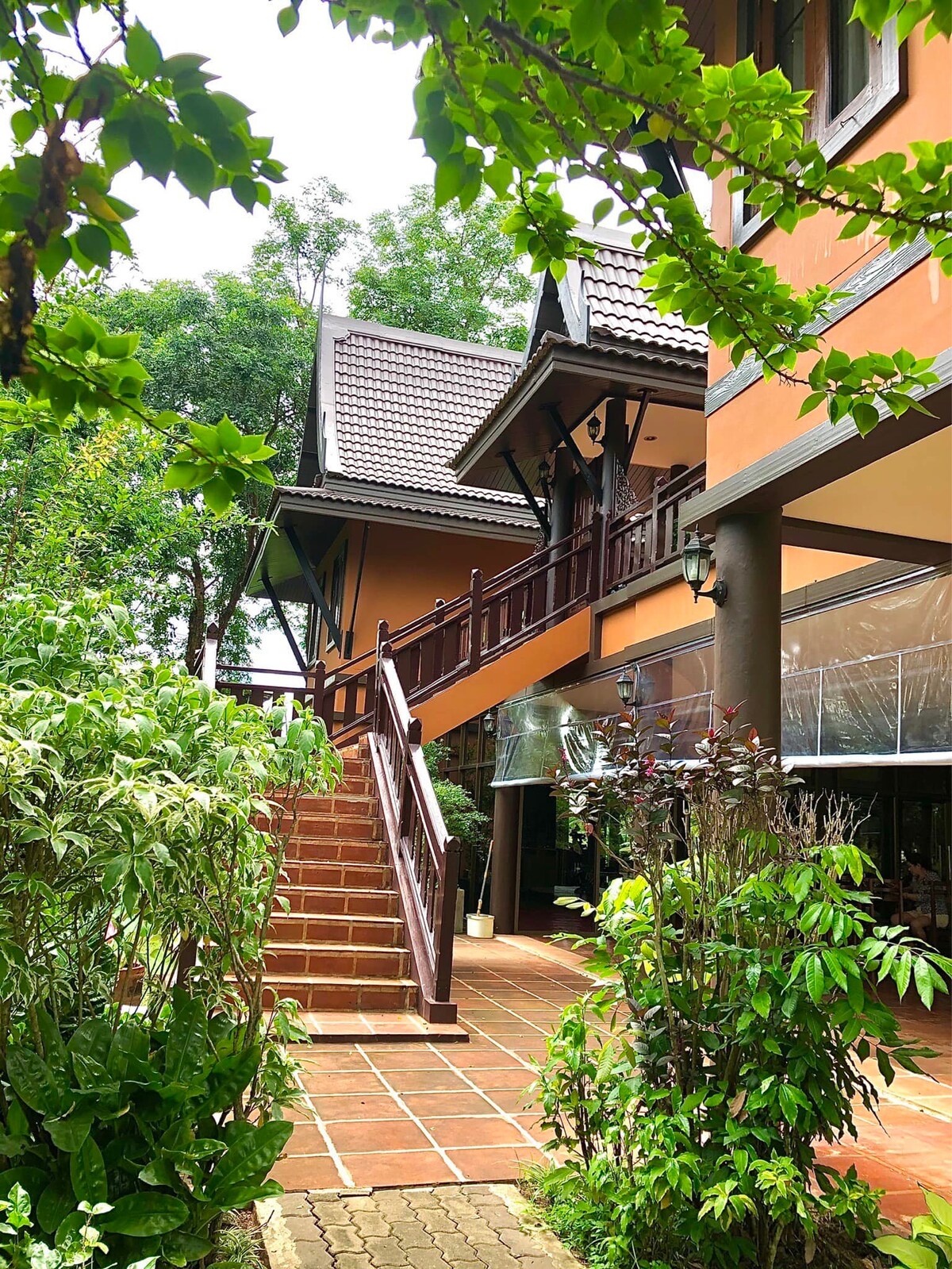 "A peaceful riverside retreat in warm Lanna Thai style" Baan Tharawana is a relaxing nature retreat located by the river, surrounded by green gardens. The atmosphere is quiet, private, and peaceful The house features traditional Thai-inspired architecture with wide, open-air balconies that allow natural light and fresh air to flow through. There is a spacious common area where guests can relax, or even work in a calm and comfortable environment.