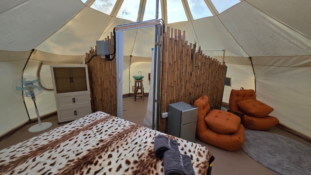 在Rim Thang Homestay享受獨特的豪華露營體驗,您可以在舒適的圓頂帳篷中放鬆身心,配有全套獨立浴室,同時欣賞Mae Suai市的壯麗全景。 醒來時,可以欣賞令人驚嘆的日出、呼吸新鮮的山間空氣,並享受寧靜的環境。 🌿 您會喜歡的內容: 配備舒適床上用品的寬✔️敞圓頂帳篷 ✔️ 全套獨立浴室,方便您使用 帳篷內可欣賞✔️迷人的城市和山景 安靜✔️的自然環境,非常適合放鬆身心