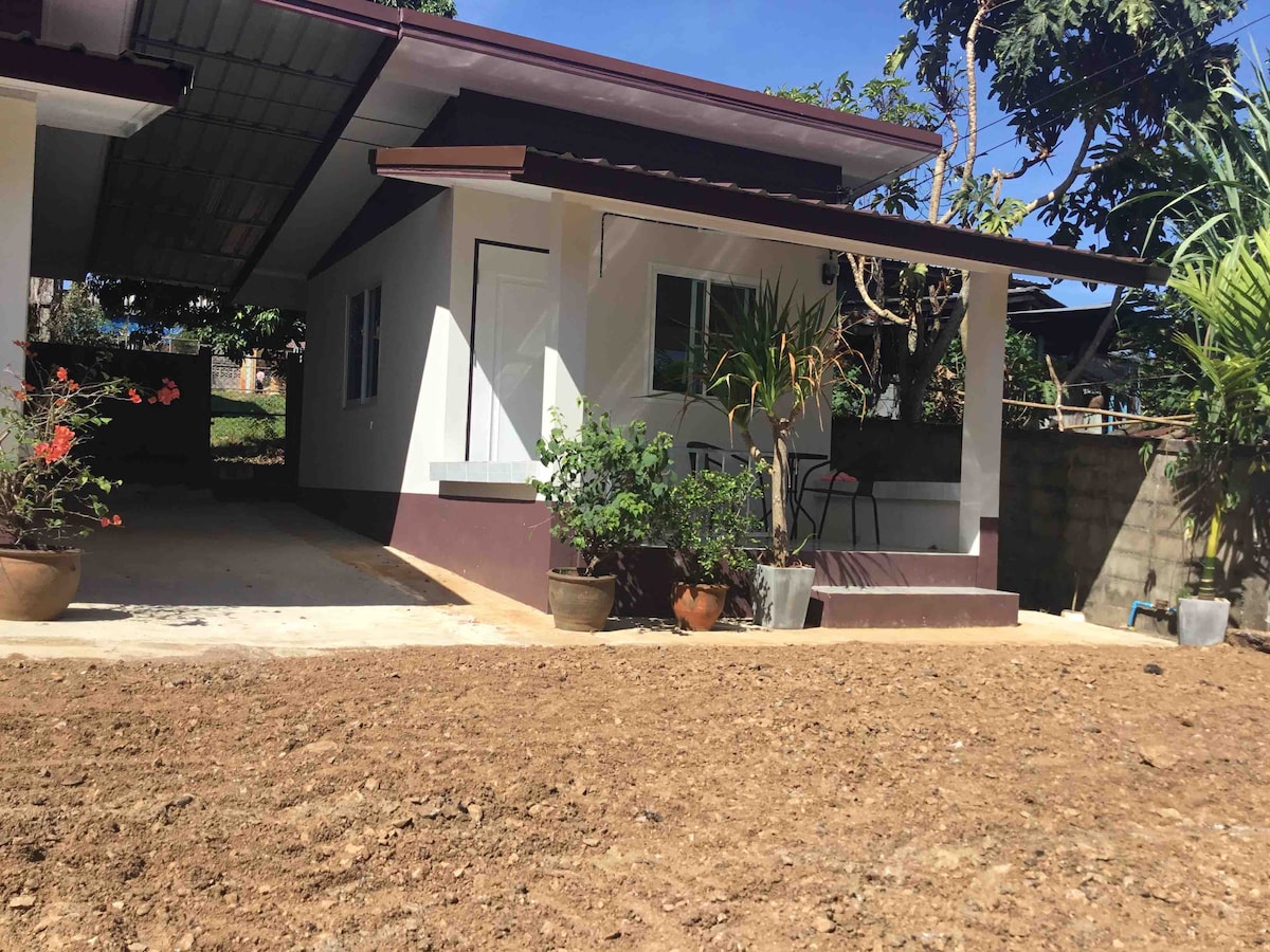 與我們一起居住在Doi Luang國家公園附近的農村。大樓內有開放式車庫,提供獨立浴室、歐洲雙人牀和空調。 露臺上有配有遮陽傘的座位,您被安靜的農村氛圍所包圍,有足夠的空間放鬆和觀看寵物、蝴蝶,甚至可能寫一本書。 應要求提供扁平屏幕! 可以在可上鎖的入口內停車。