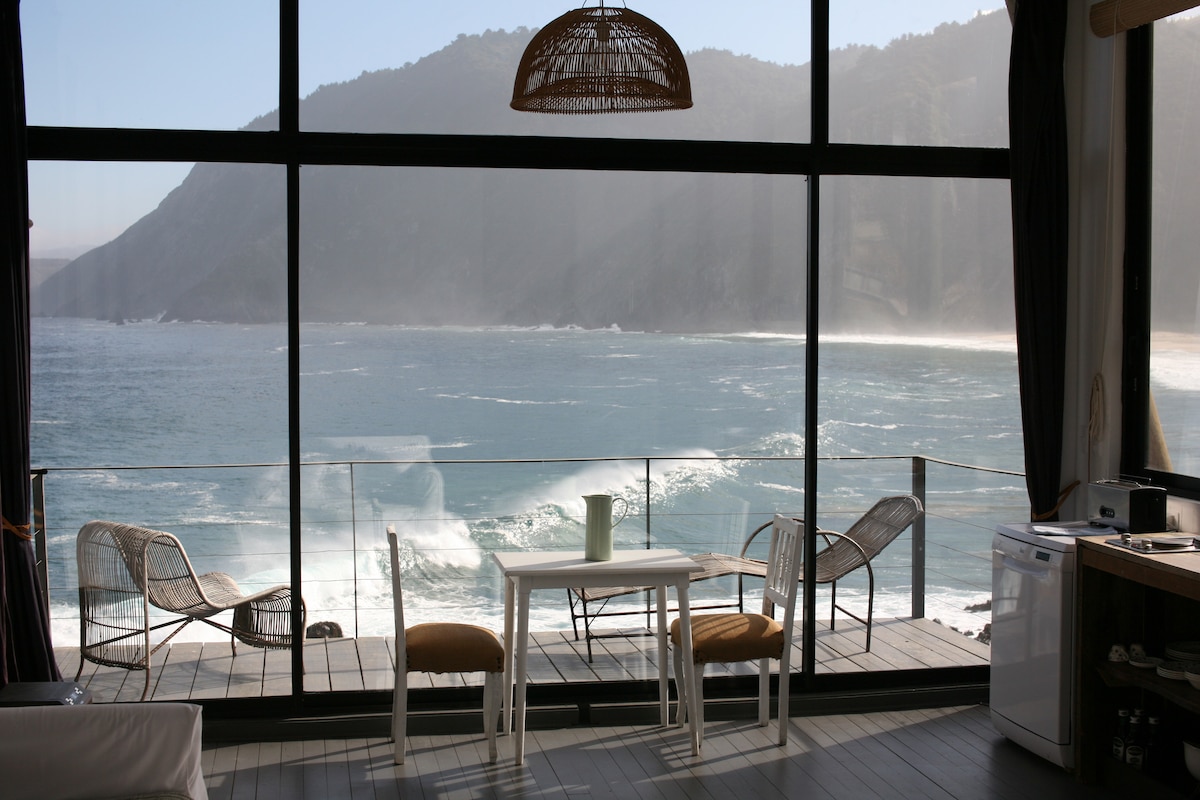 The Red Loft at Punta Quintay is exactly the same as the Gray Loft (voted as the most liked on Airbnb last year,) but "less famous." It is our favorite with 45 square meters designed exclusively for rest and leisure. Much more hidden in a ravine full of flowers, rocks and docas. The Red Loft has a clean and unique view of the Bay of Playa Grande de Quintay, exquisite sheets, a king bed and everything to cook with the best view of the sea. You see all, nobody sees you.
