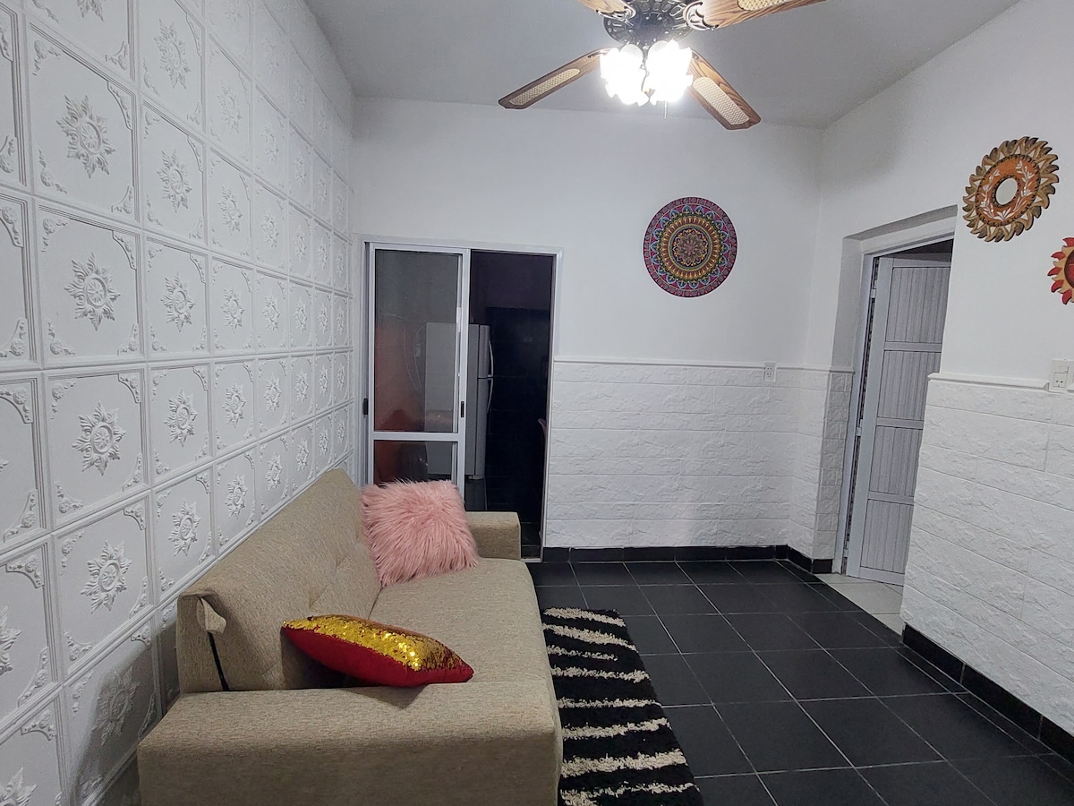Disfruta de la sencillez de este alojamiento tranquilo y céntrico. El alojamiento consta de un dormitorio con una cama matrimonial pero si fuera necesario se puede añadir otra de una plaza. Hay aire acondicionado y ventilador de techo. Hay una cocina equipada, un baño con ducha y agua caliente, WiFi y estacionamiento. Podrás llegar caminando al centro en 15 minutos y en vehículo en 3 minutos. En el centro encontrarás todo tipo de servicios.