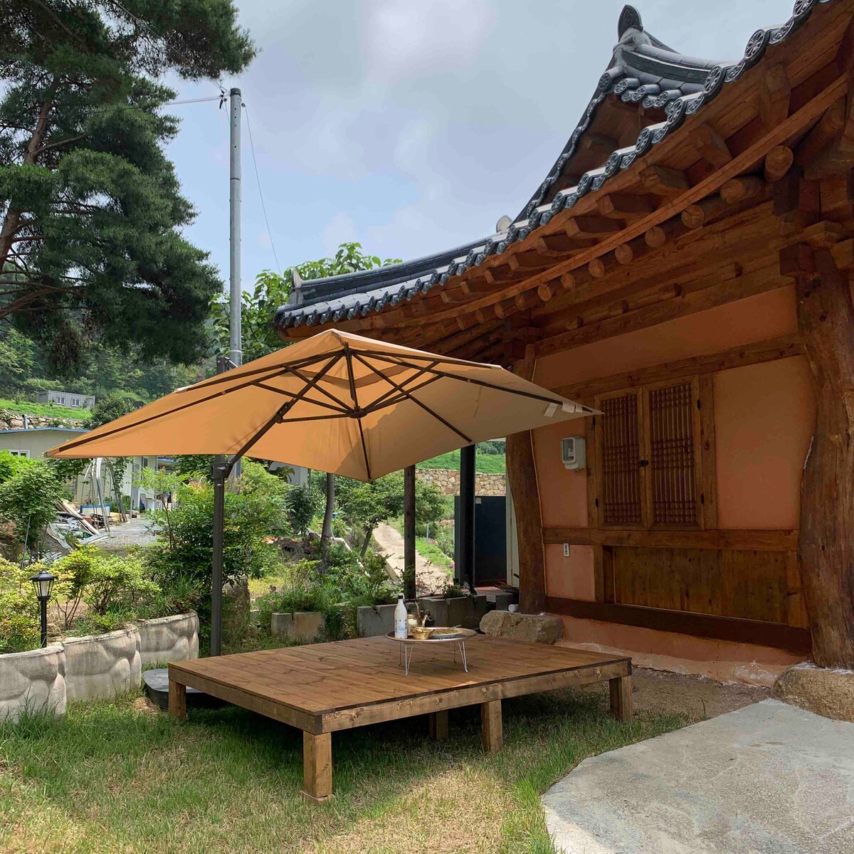 # Hanok Stay # Choncang 🏠 這是一個單一家庭的養老金,以韓屋的形狀建造,使用樹木和黃色粘土,位於密陽山的一個小村莊。 無遮擋的全景和溫暖的陽光 你可以安靜地休息,擁有健康的身體和心靈。 *火盆有火坑,因此如果您想使用,請提前準備木柴:) Instagram @ dogok.house