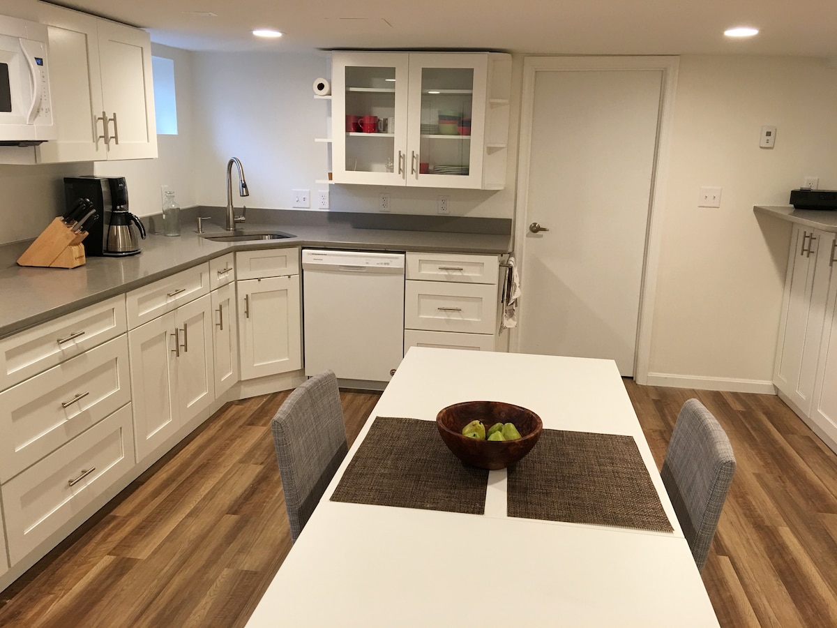 私人、寬敞的地下室套房;地理位置極佳