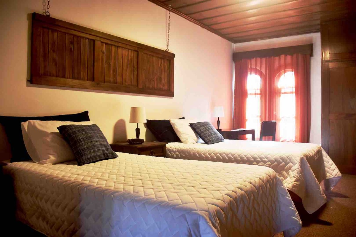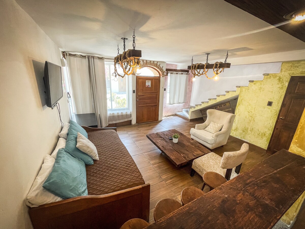 Vive la experiencia de hospedarte en el corazón de La Antigua Guatemala. A solo unas cuadras del parque, recorre estas mágicas calles a pie. Con muchos restaurantes, bares y atrcciones a solamente unos pasos pero lo suficiente como para mantenernos privados del ruido nocturno. Es un espacio acogedor diseñado para 2 personas, con todo lo necesario para estadías largas y cortas en un vecindario precioso y súper seguro. No contamos con parqueo privado y debes de subir unas gradas al llegar.