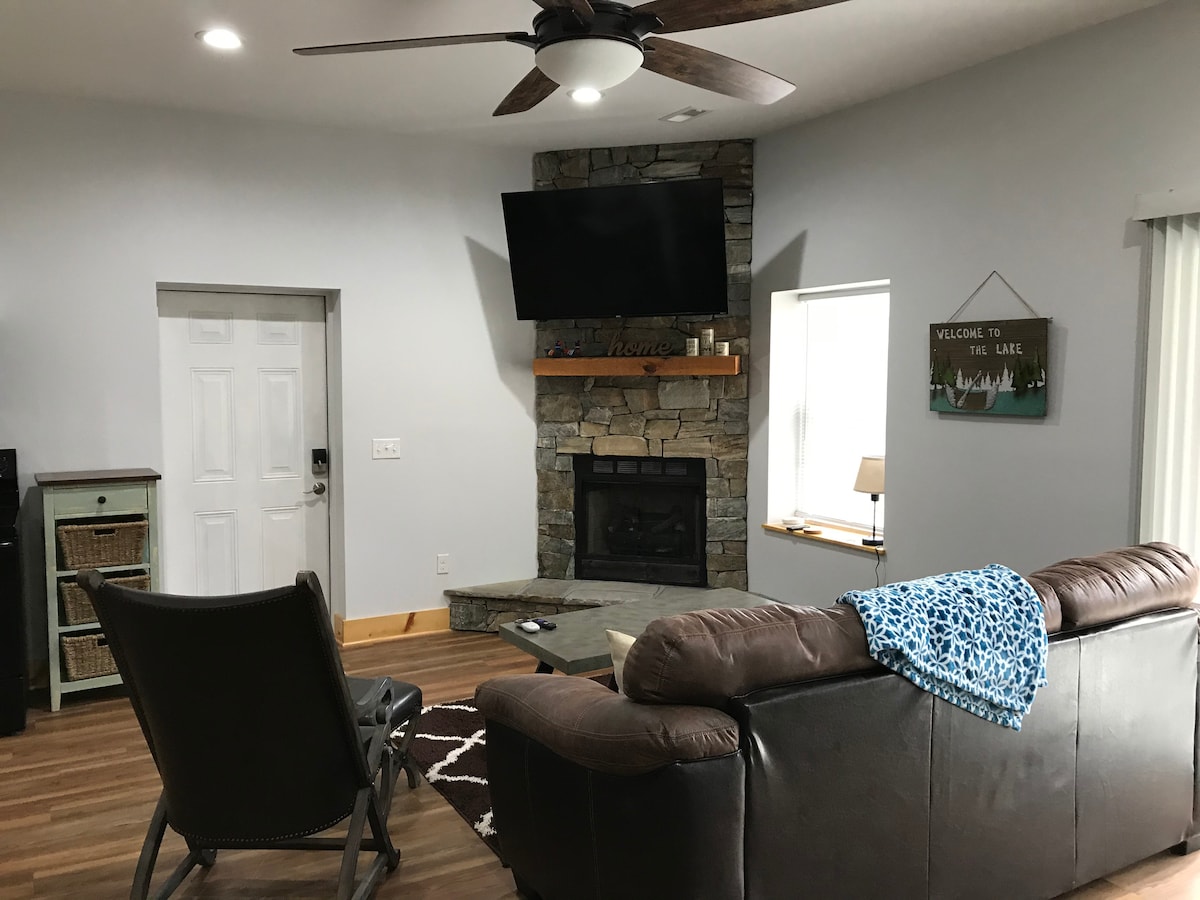 配備按摩浴池和火坑的豪華山頂度假屋。 3間加大雙人床套房、1間標準雙人床臥室、1張標準雙人床日式床墊、廚師廚房、可睡10人。 家庭喜歡撞球桌、棋盤遊戲和廣闊的後院,讓孩子們探索。 高腳椅和PackNPlay已準備好供您的小孩使用! 距離徒步旅行和當地餐廳僅幾分鐘路程,回家後可在日落時分圍坐在火堆旁享用棉花糖夾心餅乾。 立即預訂,確保您的日期安全! 煙囪岩石和煙囪岩石州立公園已開放! 湖泊將於2026年5月再次開放!