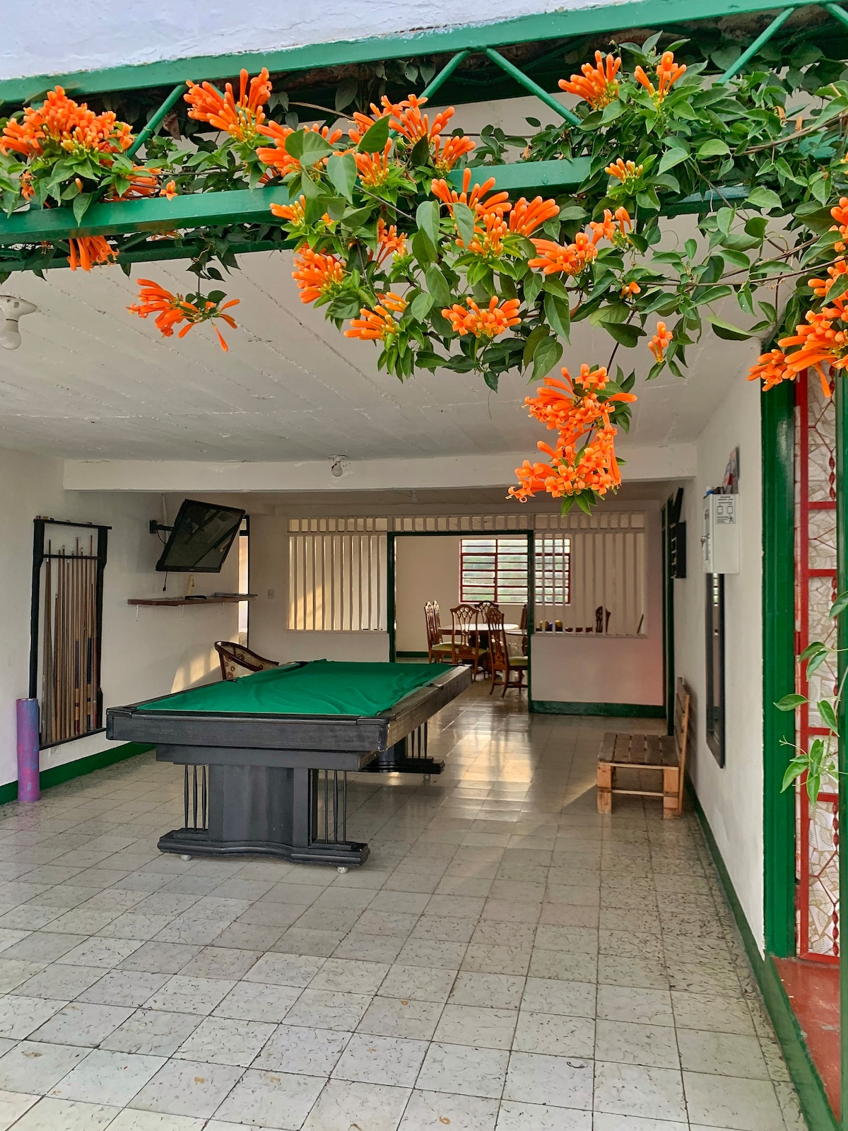 Disfruta de la conexión con el paisaje cultural cafetero en este hogareño y tranquilo alojamiento perfecto para unos días de descanso en pareja, familia o amigos. Si te gusta estar en paz y tranquilidad para recargarte de la energía que la montaña tiene para darte, este es tu espacio. Aquí puedes disfrutar desde una mañana con una vista preciosa y el canto de los pájaros en una hamaca, hasta una noche de billar y parrillada con amigos. También cuentas con TV, wi-fi y buena señal.