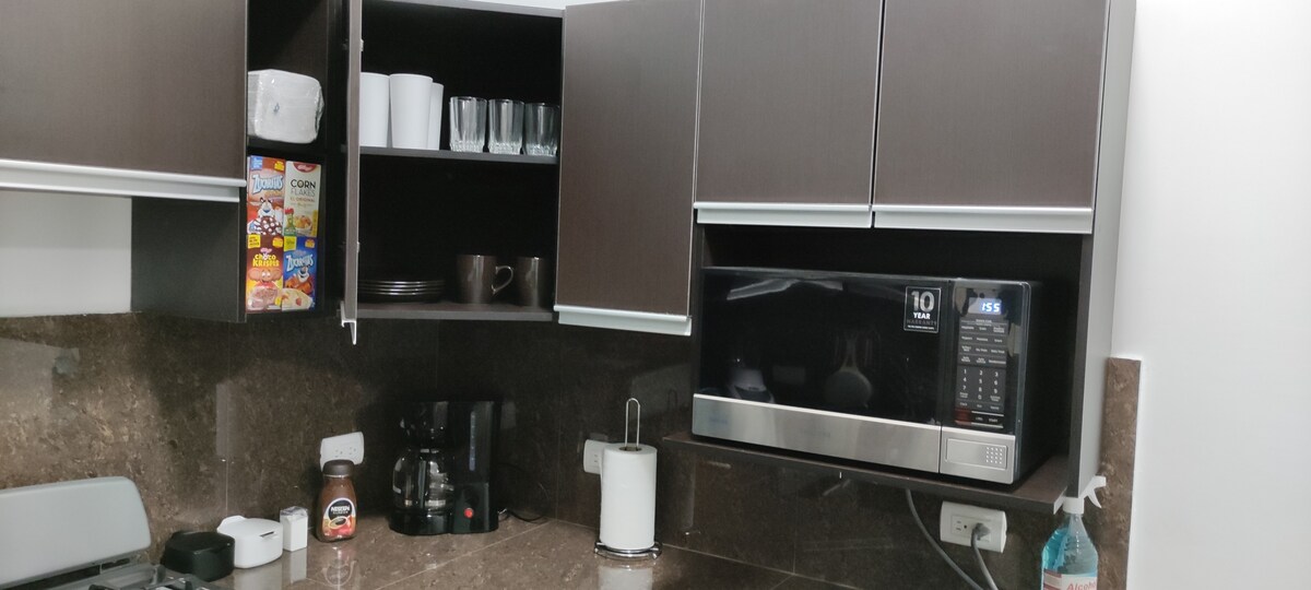 整套房屋配備全新設施,位於安全的住宅區,對面就是 Pradera Chiquimula 購物中心:這個區域有餐廳、電影院、商店等。這棟房屋有 2 間臥室,一間配有一張 2 公尺寬的雙人床,另一間配有一張 1.8 公尺寬的雙人床。 兩間臥室都有空調。