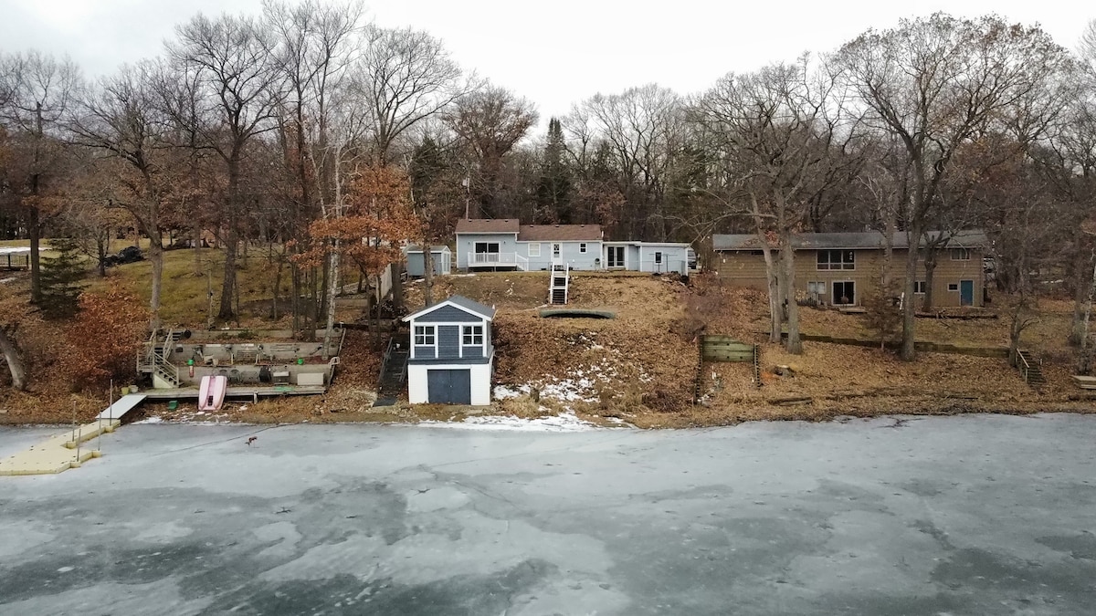 3 間臥室(2 張特大床、1 張雙人床)、2 間衛浴,位於南中心湖。 從熱水浴缸和私人陽臺欣賞美麗景色。 在湖邊享受夏天,或在冬季享受溫暖的地板。 零食和咖啡,來自我們當地烘焙商的新鮮研磨(深色或淺色烘焙-您的選擇!) 現場洗衣/瓦斯烤架/全功能廚房/庭院遊戲/槳艇/獨木舟 下層的入口可供輪椅使用。