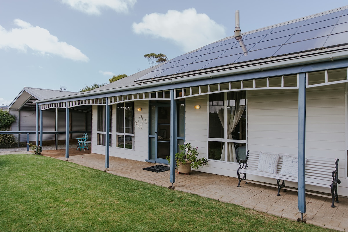 位於我們美麗花園底部的私人寧靜空間,對面是Hindmarsh River步道,經常有觀鳥者光顧。非常適合欣賞大自然魔力的情侶,門口有青蛙鳴叫,鳥類豐富。 開車前往維克多港的Esplanade僅需5分鐘,您可以搭乘歷史悠久的Cockle火車前往Goolwa ,或乘坐馬拉電車前往令人驚嘆的花崗岩島。