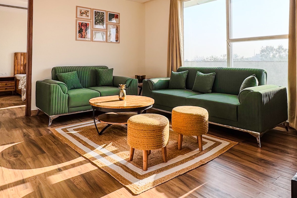想像一下,微風穿過茂密的樹冠,黎明時分的鳥鳴聲,和壯麗的日落......俯瞰德里的標誌性蓮花寺和ISKCON的寧靜景色! 我們的寧靜綠洲坐落在安靜的南德里街區,是一個精心設計、寬敞的公寓,提供藝術和寧靜的氛圍,非常適合適情侶、小家庭或長期住宿,以釋放創造力! 我們的房源結合了平靜的能量和現代的舒適,讓您在德里的時光難以忘懷。