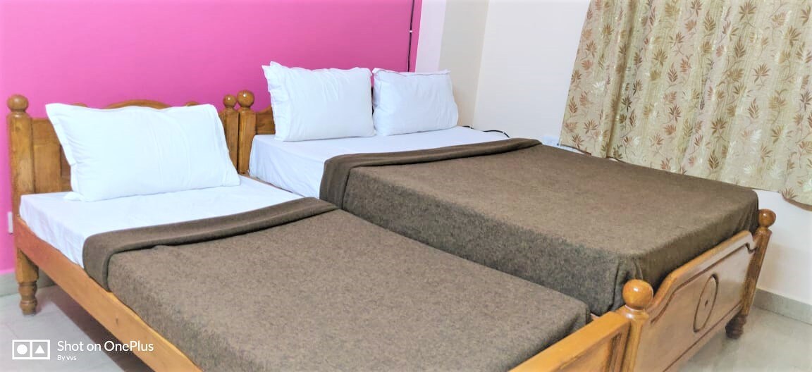 入住這個寧靜的房源,與全家人一起放鬆身心。 OM Srinivasa家庭住宿-您的舒適是我們的首要任務,我們將展示待客之道的高度。 我們有三種類型的預訂,即標準、豪華和套房類型,包括附設的臥室浴室、客廳、餐廳和廚房。 設備與服務,配有空調、小廚房、烹飪用具、WIFI和電視設施。