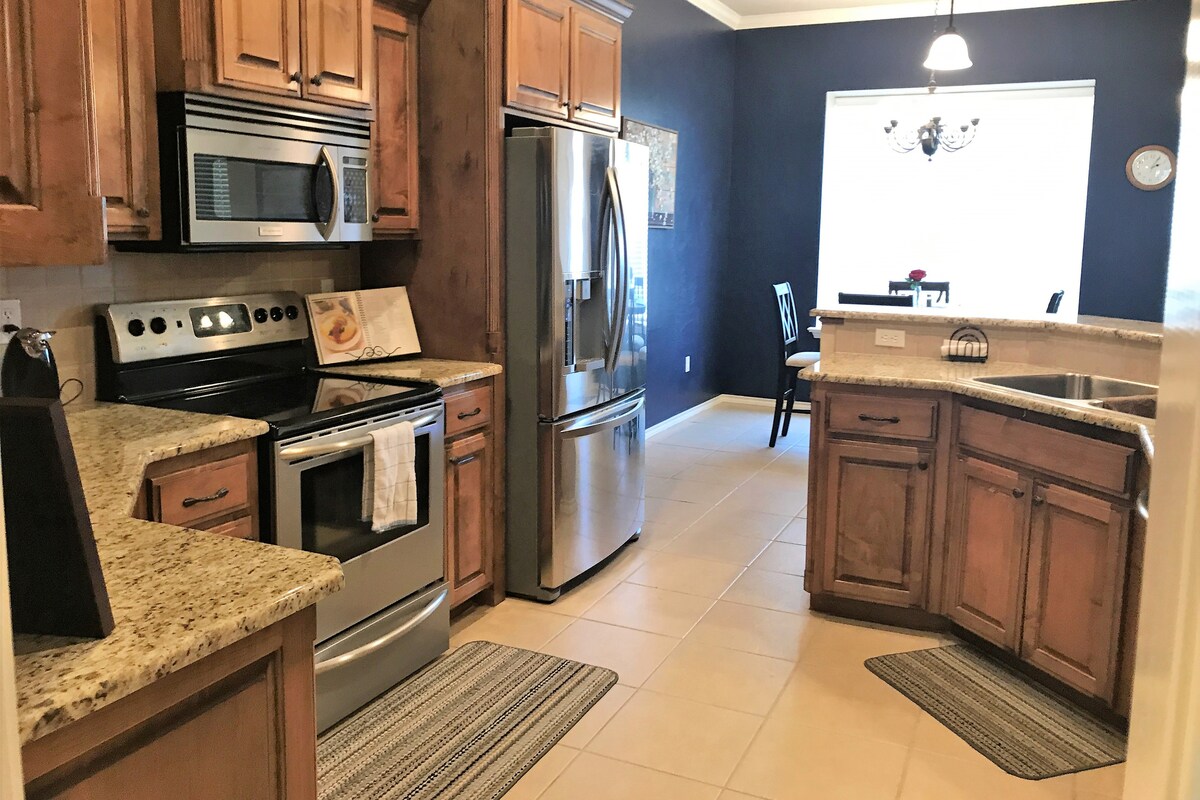 溫馨舒適的家。 乾淨現代化,靈感來自本地。 配備設備齊全的廚房、洗衣機和烘乾機、WiFi、專用電影和遊戲室、家庭遊戲和室外火盆。 房源距離Choctaw賭場和活動中心2.4英里。 參觀Choctaw文化中心(致力於探索、保護和展示Choctaw人的文化和歷史)。**更新**禁止使用超過正常電量的加密貨幣挖礦**