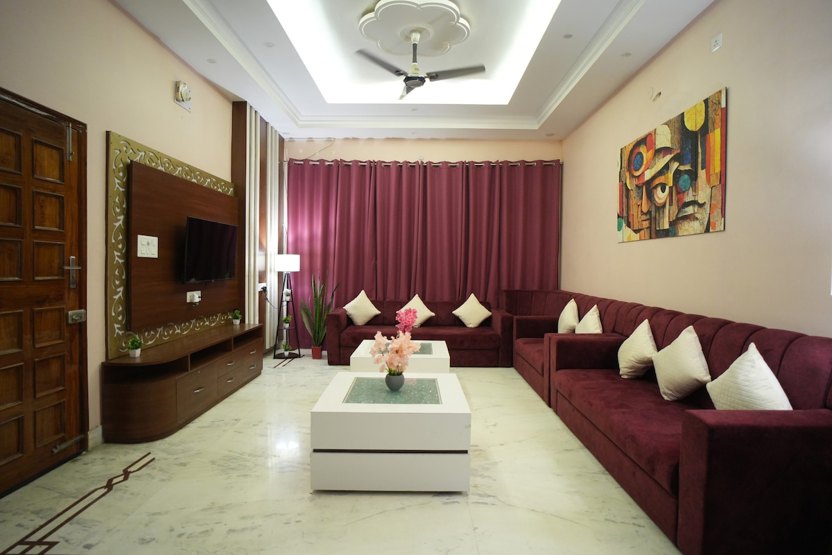 「此房源位於一樓和二樓,沒有電梯」 「這是一個2BHK、2BHK和1BHK單位並排組合」 「距離卡西維斯瓦納特寺廟 5 公里」 珍珠莊園 – 豪華 5 房 2 衛奢華頂樓公寓 歡迎來到The Pearl Manor ,這是一個豪華的5BHK頂樓公寓,專為大家庭、婚禮團體和尋求瓦拉納西最佳住宿的旅客而設計。 這間住宅擁有寬敞的室內裝潢、優雅的家具和高級的設備與服務,讓您感覺像是自己的私人宮殿。