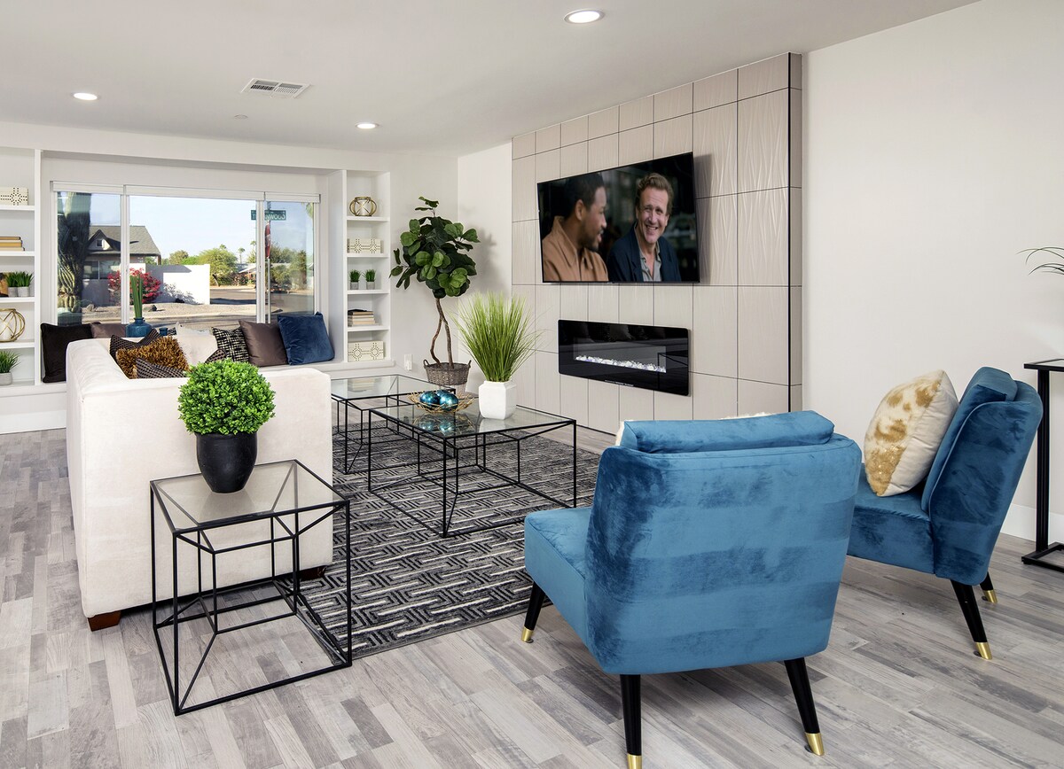 - Next to Old Town Scottsdale - King Beds - 65' Smart TV with all the streaming apps. - Full Kitchen A brand-new luxurious and modern experience in this professionally designed and curated two bedroom apartment that will leave you remembering a great stay. This one of a kind home is walking distance to Old Town Scottsdale and all the great restaurants and bars the city has to offer.