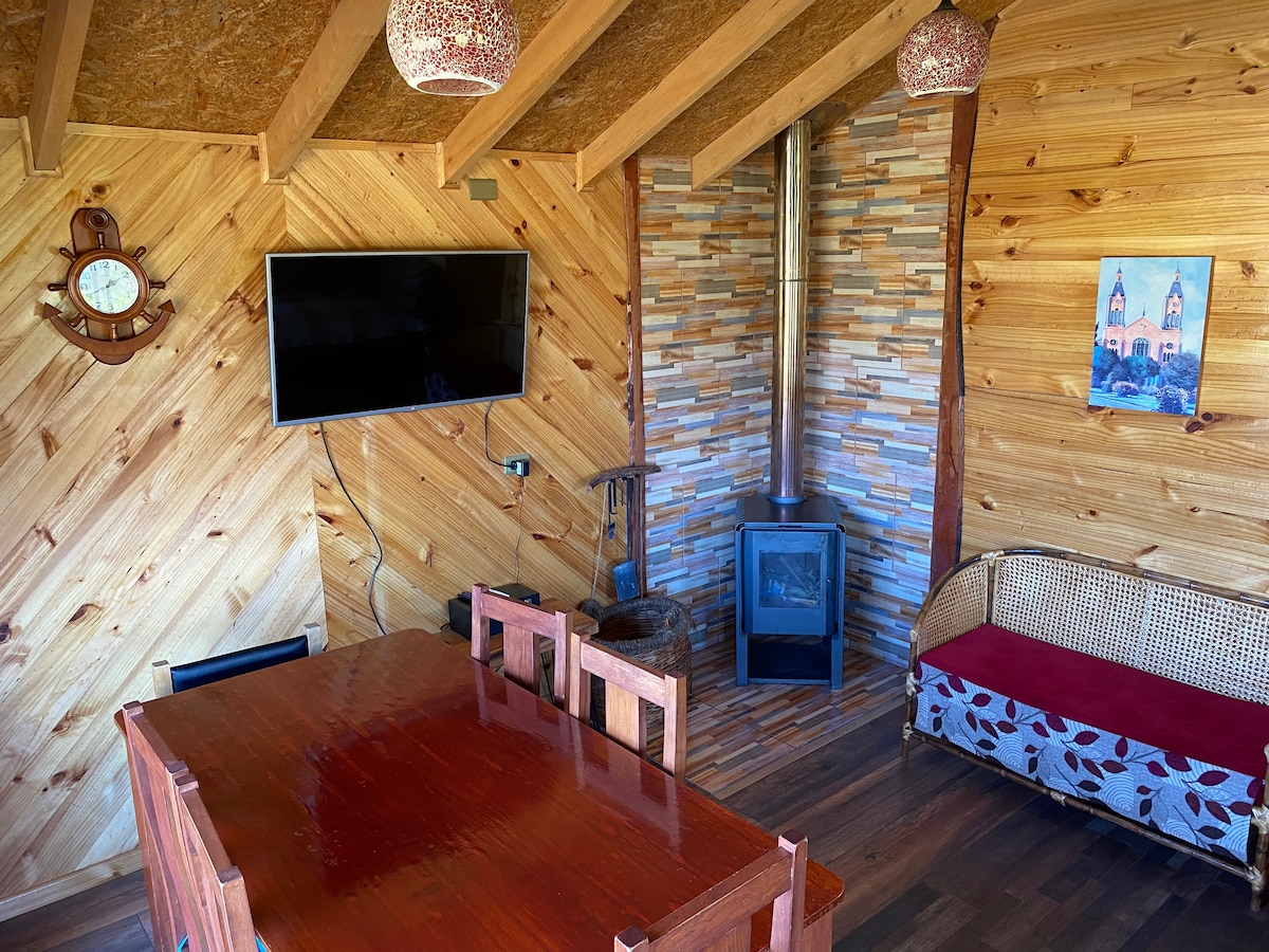 迷人的小木屋,位於卡斯特羅的農村區域,安靜,俯瞰鄉村,距離市中心只有幾分鐘路程。 您可以包圍Chiloé為遊客帶來神奇的南方和鄉村氛圍。 安全寬敞的地方,適合停車和戶外散步。 小木屋配有衛星電視、飲用水、熱水、牀單、毛巾、毛巾、木爐、一些洗漱用品以及住宿所需的所有物品。