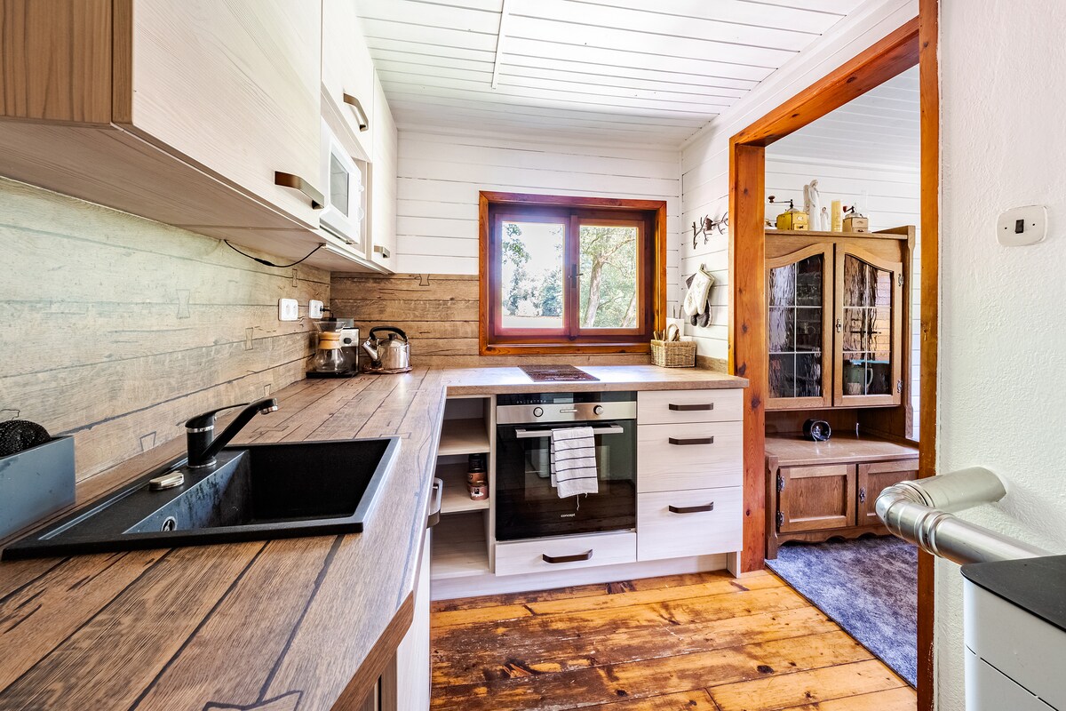 Premium conscious experience. Read bellow👇🏼 🤍Wake up in a cozy nest with a glass front opening to the forest canopy to enjoy birdwatching, listen to raindrops or music. A stone fireplace warms the heart of the cabin. Slow, mindful cooking invites you to the fully equipped kitchen and cozy forest garden by the fire. Come to explore this beautifully wild area, swim in the nearby dam Slapy and reconnect with nature