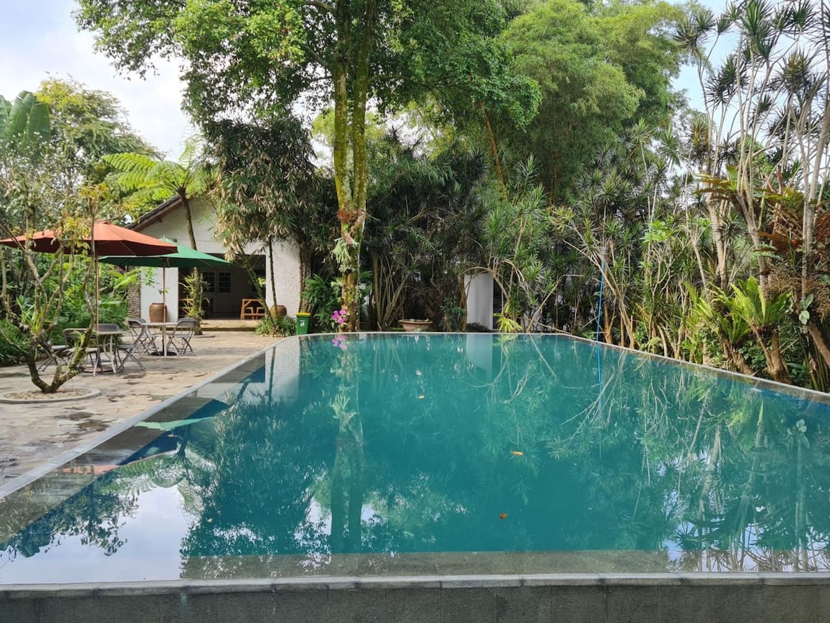 Bango別墅是那些想在寧靜中體驗綠色、自然生活的人的完美場所。5,000平方公尺的土地、8間房間、最多可容納50人的會議室,以及遊泳池、臺球桌和稻田。 Bango別墅配備了放鬆身心、享受外出時光所需的一切。 別墅位於美麗的Cilember瀑布附近,可欣賞兩座山的迷人景色。