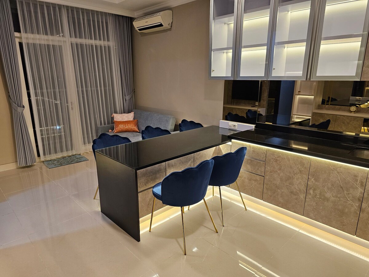 Located on the 22nd floor of Tower A, this studio was renovated in May 2025, featuring a fresh interior with WiFi and Netflix. The apartment is equipped with AC, a refrigerator, a kitchen set, and complete essential living amenities for your comfort. Building facilities include a gym, swimming pool, playground, and 24-hour security. #Suitable for 2 guests. For monthly rental, we will top up electricity with IDR 600,000, which is usually sufficient for one month. Welcome and feel at home 💕