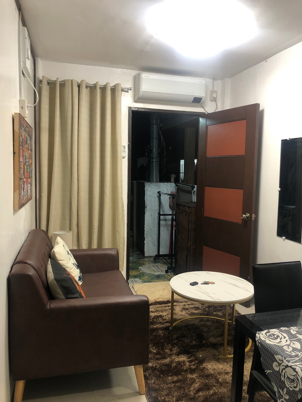 This cozy home designed for family people. A minimalistic home interior which u can relax and find peace..With centralized air-condition,one bedroom with aircon, one bathroom with free use of shampoo,bath towel,body wash,and toothpaste, a kitchen with free use of induction cooker and rice cooker for ur foods..We also have a smart TV with netflix included which you can enjoy watching with ur favourite movies and series😊 P.S. This unit is so safe because it is located near the guard house😊