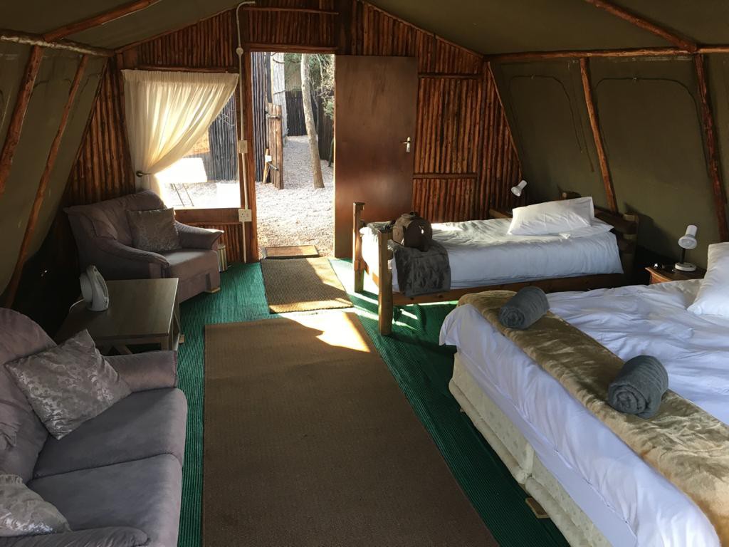 An African camping experience surrounded by great scenery and abundant Birdlife. Need a break from the Rat Race? Lounge at the lake/pool. Enjoy a romantic dinner at your private boma fire, taking in the amazing sunsets and sounds of the wild and recharging your battery.Tents are off the grid. We offer the following and more that can be booked with the farm hand Derrick 1: Bush walk and breakfast: R350.00 per person 2: Hot tub: R250.00 per couple per hour 3: Bag Ice R35.00 4: Fire wood R35.00