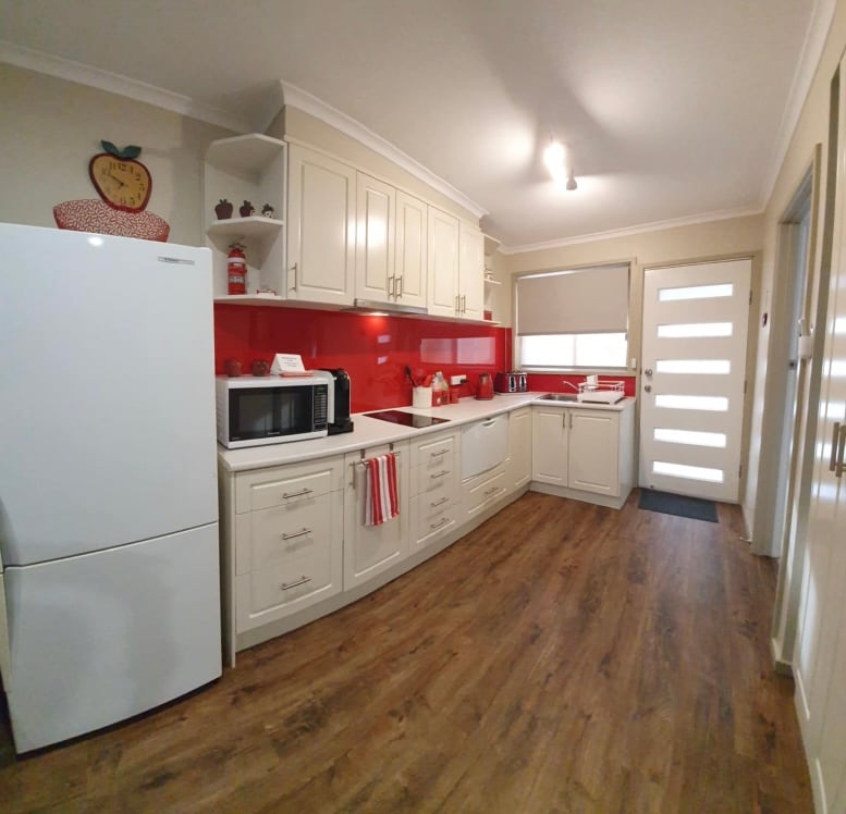 我們的後院位於Wodonga市中心,提供寧靜的度假勝地。 平房舒適,有自己的浴室和私人庭院,您可以躲避世界,或者把它當作探索該地區的基地。 封閉的後院對寵物和小孩來說是安全的。 請注意,我們的房源深受寵物主人歡迎,雖然我已徹底清潔,但有些房客抱怨有狗的一般氣味。 如果您對此敏感,不妨考慮預訂其他地方。