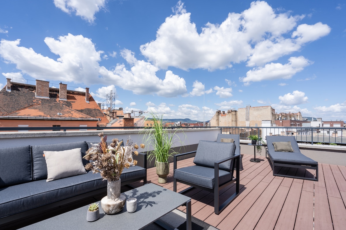 豪華2臥室頂層公寓|巨大50平方公尺露臺|中央