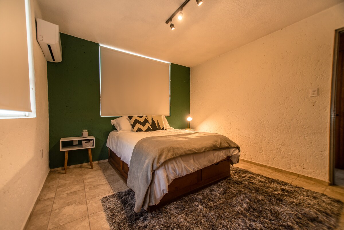 獨立房屋,位置優越,距離主要大道兩個街區,開車即可抵達馬德羅市中心。馬德羅市中心,15 分鐘可抵達米拉馬爾海灘,10 分鐘可抵達坦皮科歷史中心,7 分鐘可抵達木匠湖。設有有蓋車庫、一間帶全套浴室的臥室、雙人床、迷你分體式空調、工作區、網路和 43 吋智慧型電視。餐廳配有天花板風扇和一張沙發床,可供兩位額外的客人使用,還有廚房和洗衣機。