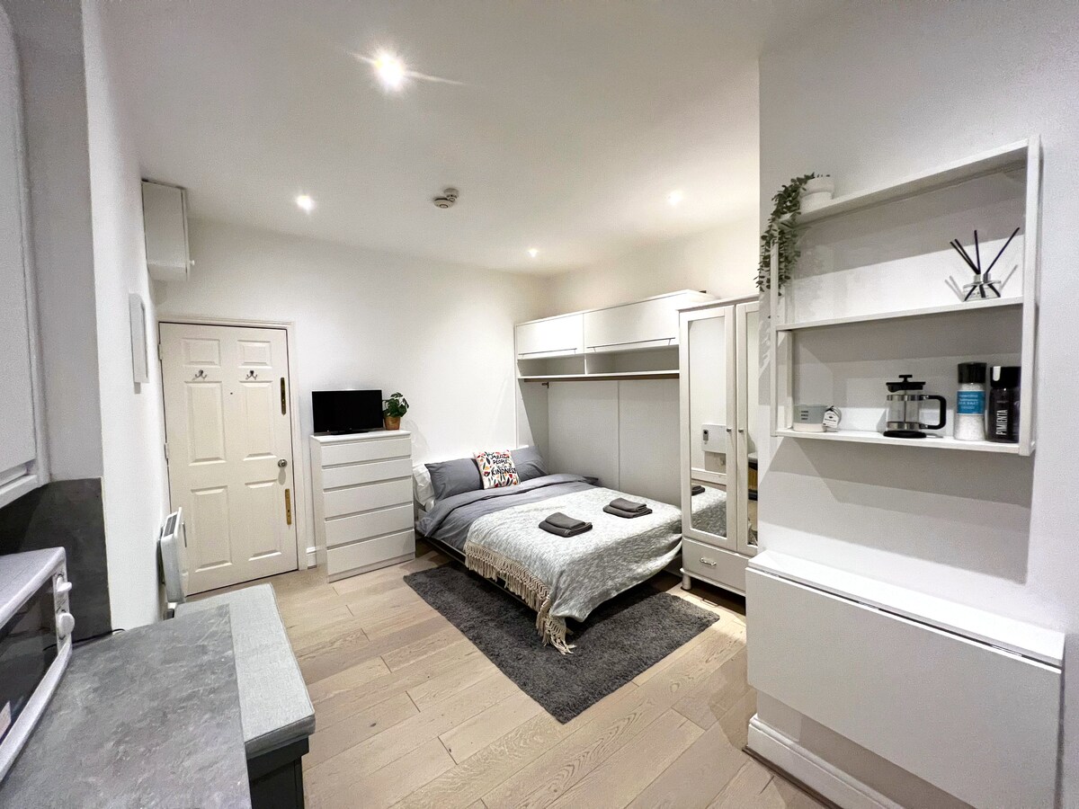在我們迷人舒適的Dalston單間公寓中探索極致的城市生活體驗。 時尚現代的設計配有折疊雙人牀、設備齊全的廚房、洗衣機和烘乾機烘乾機、高速WIFI和平板電視。 位於充滿活力的Dalston街區,您可以輕鬆前往時尚的商店、咖啡和餐廳,以及附近的火車站和巴士站,以探索這座城市。 立即預訂住宿,體驗倫敦最好的生活!