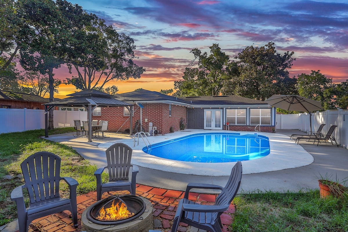 Escape to this stunning 3-bedroom, family-friendly oasis nestled along Doctors Lake riverfront. With a sparkling pool and breathtaking sunset views every evening, this is the ultimate haven for relaxation and fun. Home has a pool, firepit, outdoor pool table, and direct access to the river, ideal for fishing or kayaking. 30 min to downtown Jacksonville, 10 min from NAS Jax Naval Base. 10 minutes to boat ramp. 2 story house, bedrooms on 2nd floor Inquire for Events ($500 Event Fee, Max 50 ppl).