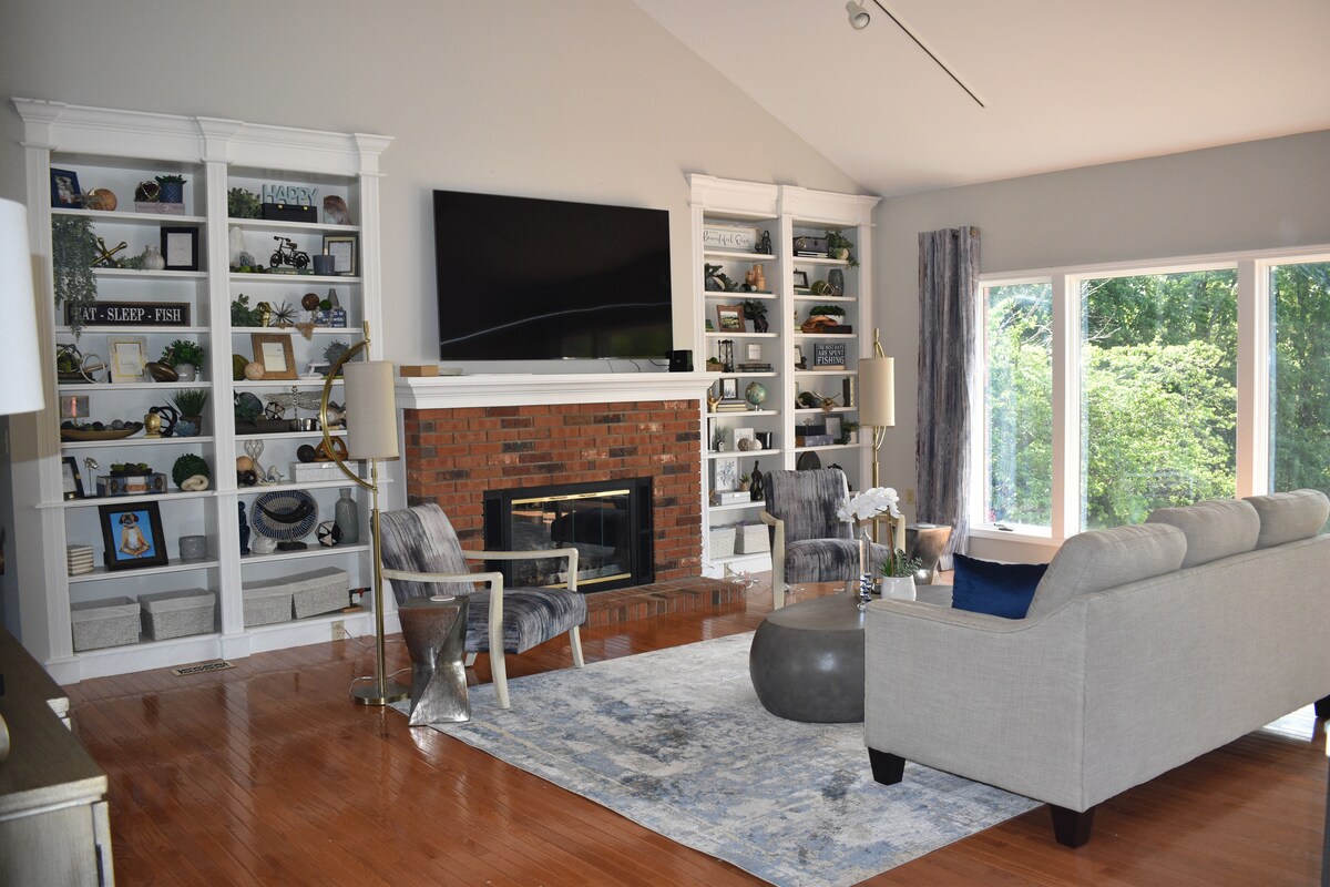Welcome to Burnside Bay House, a 4300+ sq. ft home with a huge deck, patio, 2 kitchens, and 27 acres to explore! It's only an hour and 15 minutes from STL! You can walk down to the water or take a short ride to the boat ramp. Bring your boat, jet skis, and water toys. There's plenty of parking on site! Newly remodeled and decorated with carefully selected furnishings & decor. Come relax and enjoy the lake & the views!