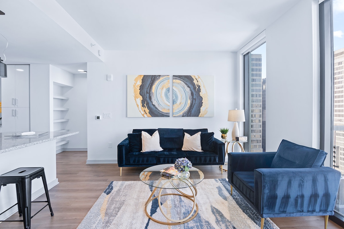 This residence is designed to feel both luxurious and livable, with soaring ceilings that emphasize openness and light. Inside, lush greenery brings a fresh, tranquil vibe to every room, creating an urban oasis above the bustle of the city. The open-concept living space blends comfort and style, offering sweeping views of the skyline from expansive windows and a wide, inviting balcony. Whether you’re cooking a gourmet meal in a sleek kitchen or relaxing in a lounge that feels like a retreat.