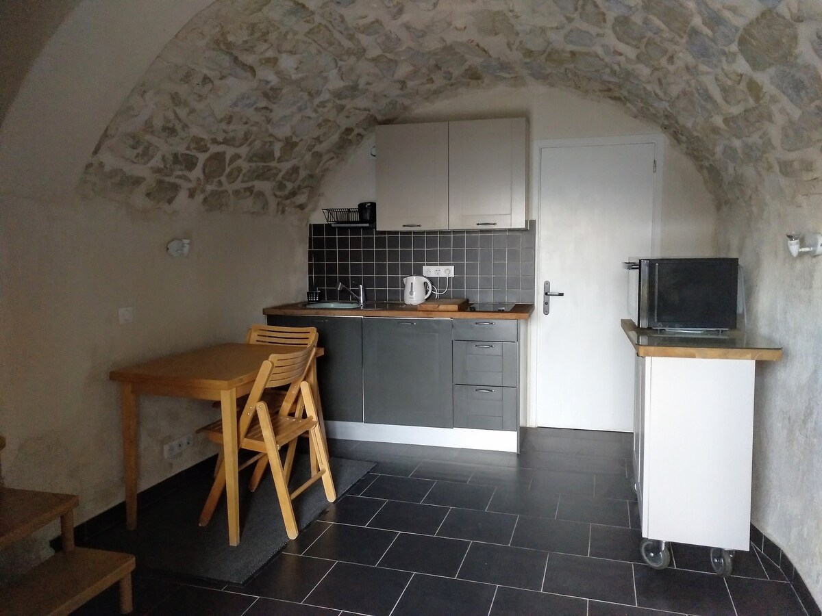 距離尼斯和摩納哥的一半,位於Eze步行中世紀村莊迷人的套房,位於一棟16世紀中心的小房子中,屋頂露臺可俯瞰地中海。 客廳和客廳第一樓有壁爐,然後是臥室和半開放式浴室,配有照明浴缸和淋浴間。 這是一個神奇而浪漫的住宿,就在Eze的老村莊中間,以其手工藝藝術畫廊、餐廳和頂部的異國情調花園而聞名。 絕佳景觀! ! !
